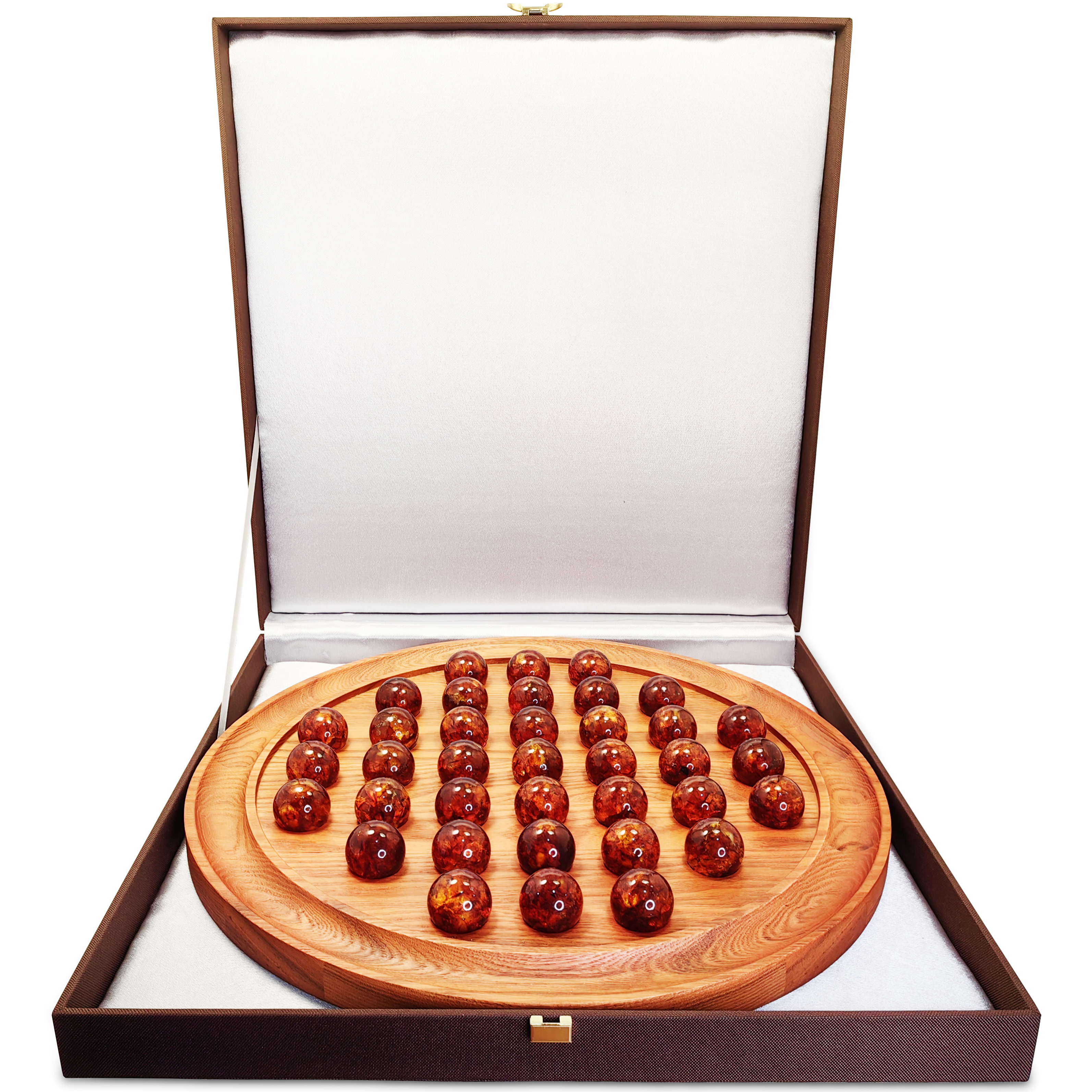 Настольная игра из ясеня и янтаря "Мадагаскарские шашки" светлые шары