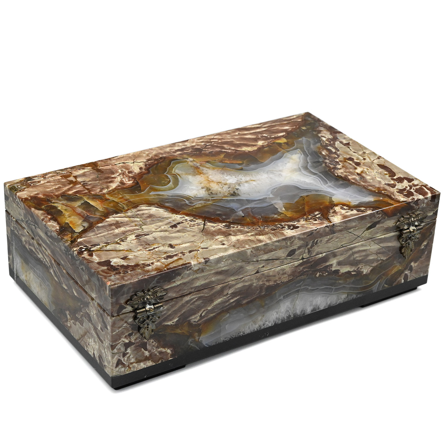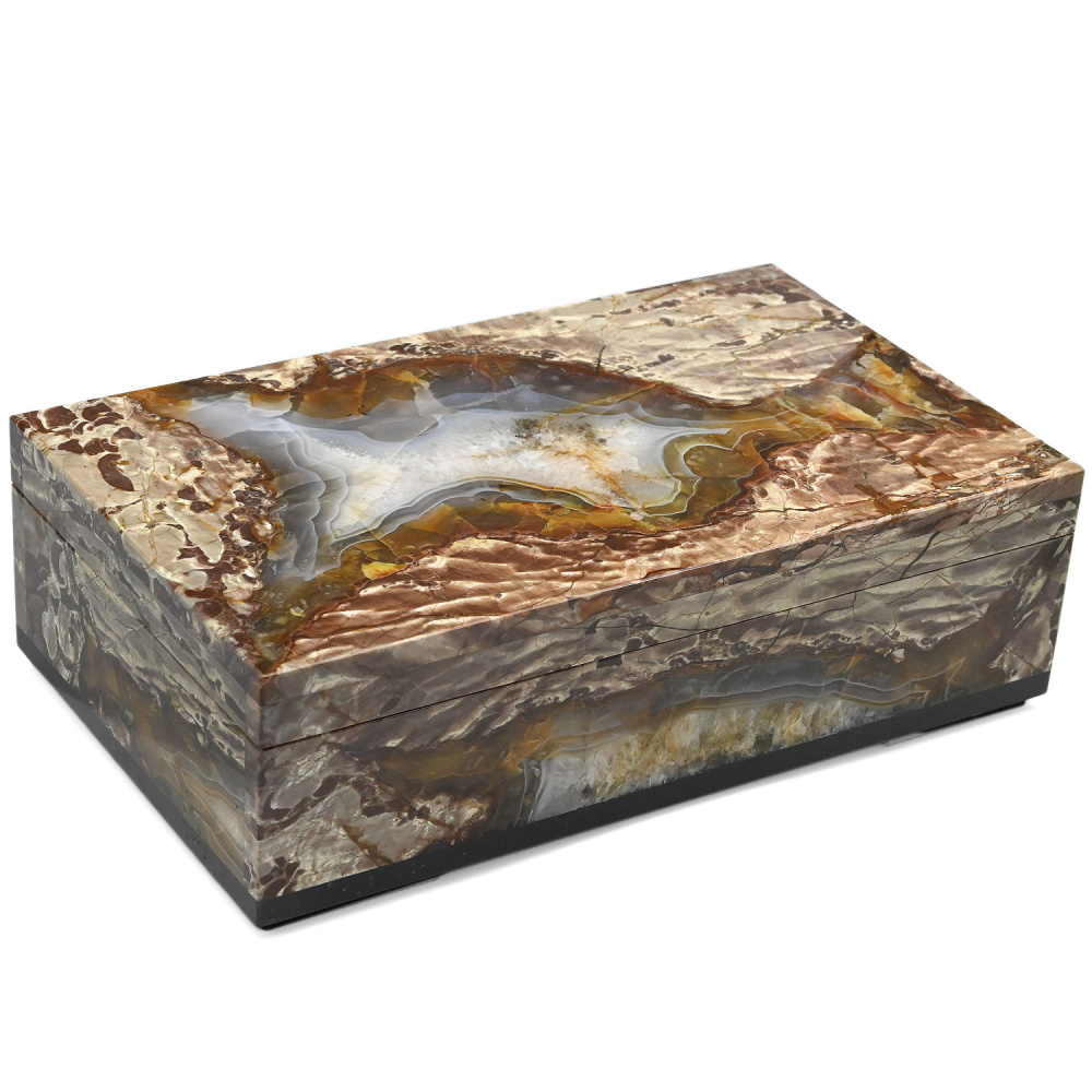 Шкатулка изготовлена вручную изнатурального камня, внутри полирована и отделана бархатом, откидная крышка установлена на красивых шарнирах отлитых из бронзы.