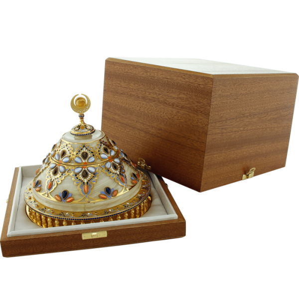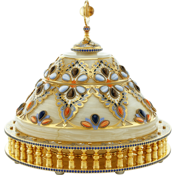Ларец изготовлен из природных материалов высокого качества. Филигранная проработка деталей характеризует безупречную работу мастера. Изделие станет изысканным статусным подарком для Vip персоны, великолепно впишется в богатый интерьер дома или рабочего кабинета.