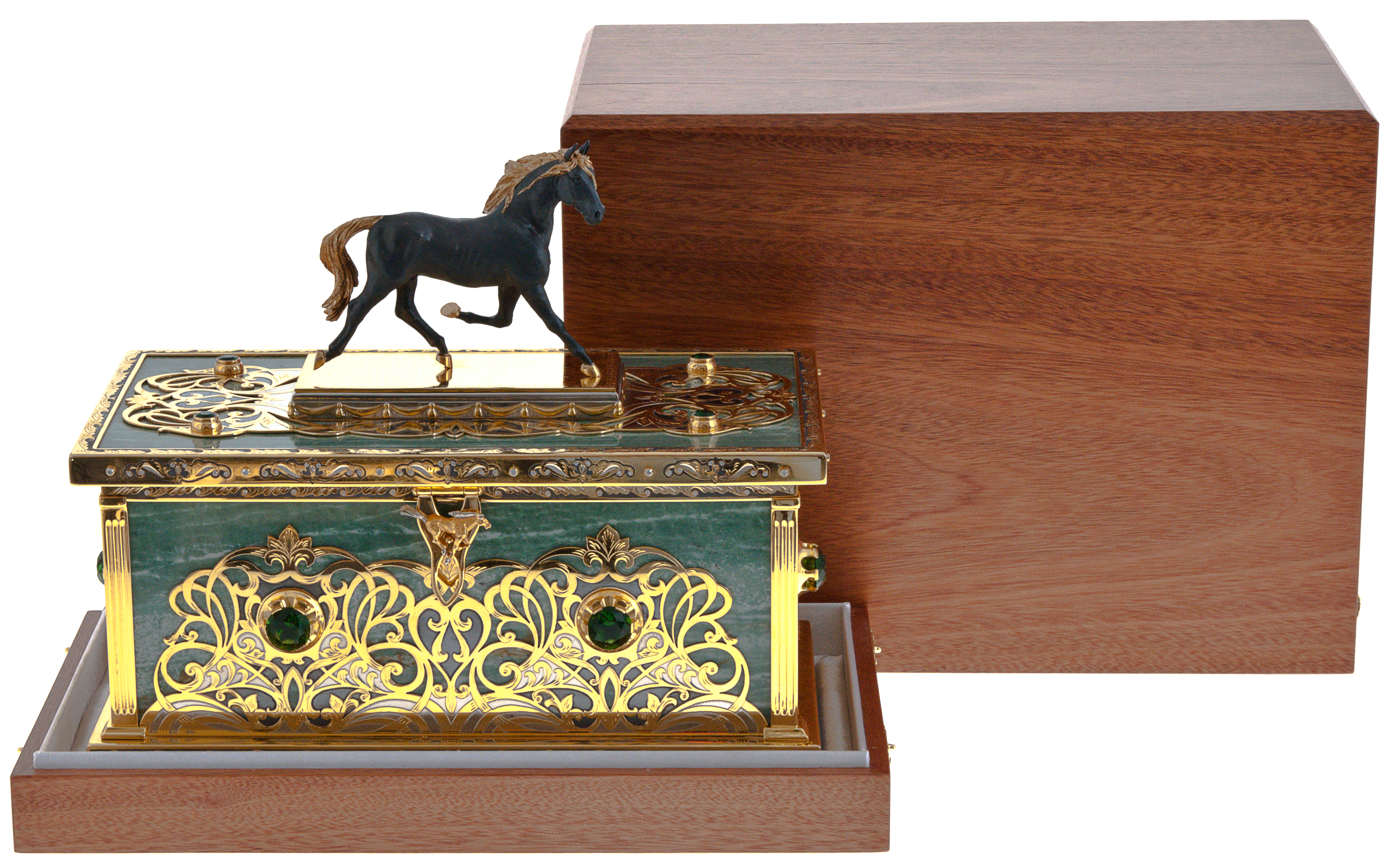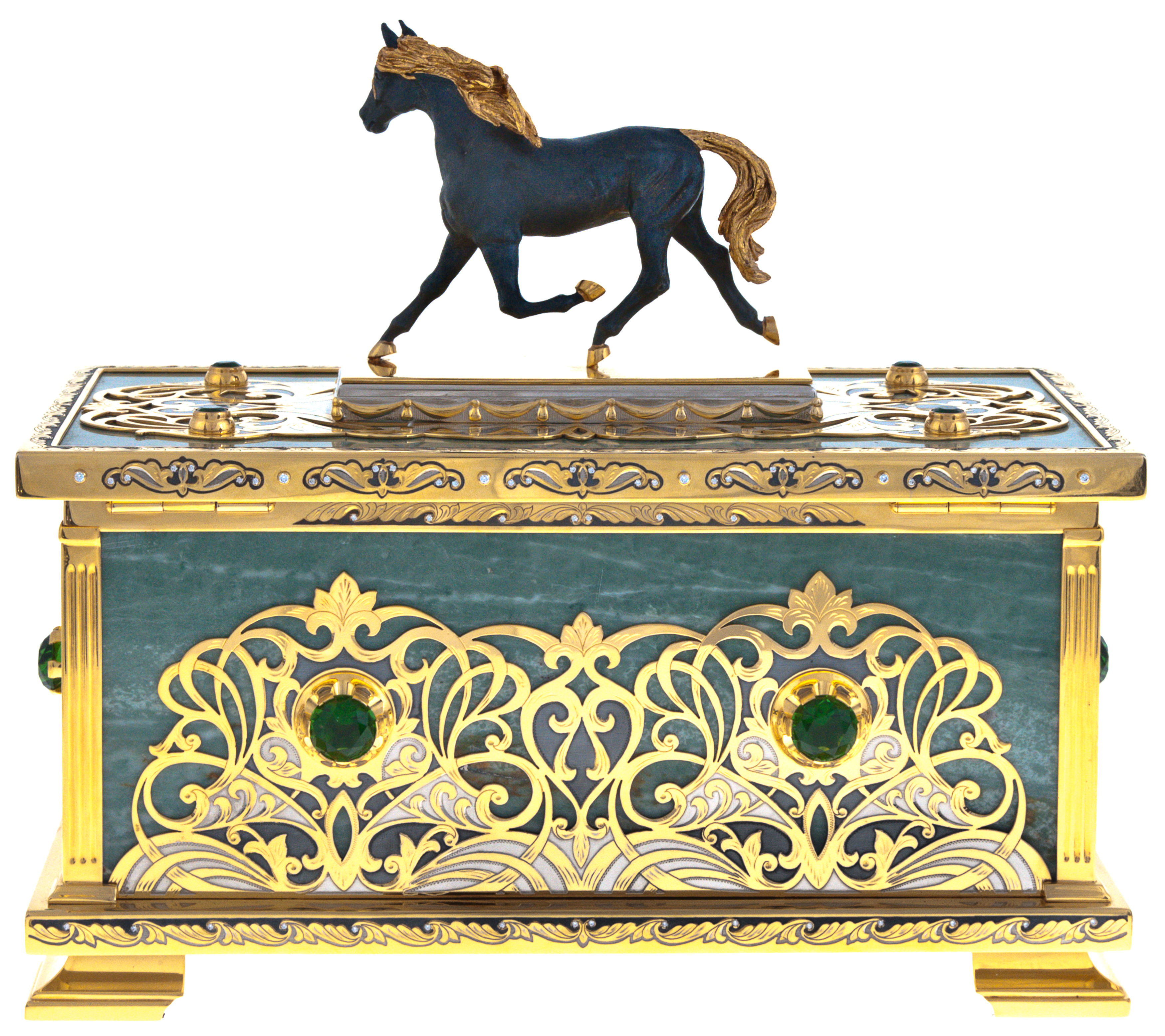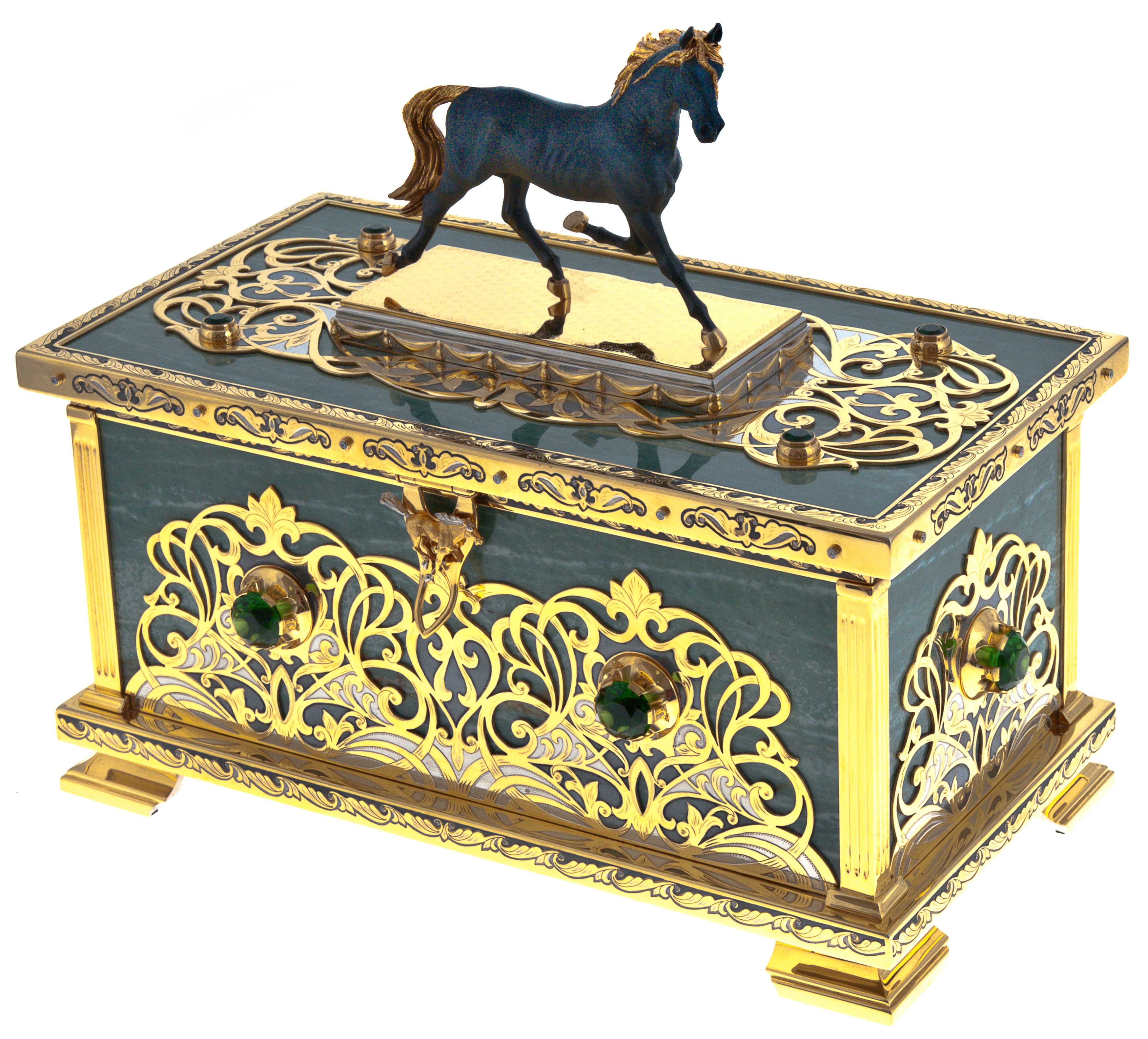 Материалы:офиокальцит, фианиты, латунь, бронза, эмали.