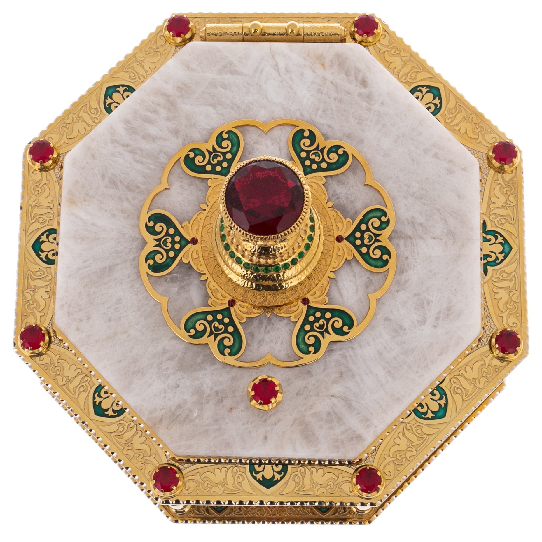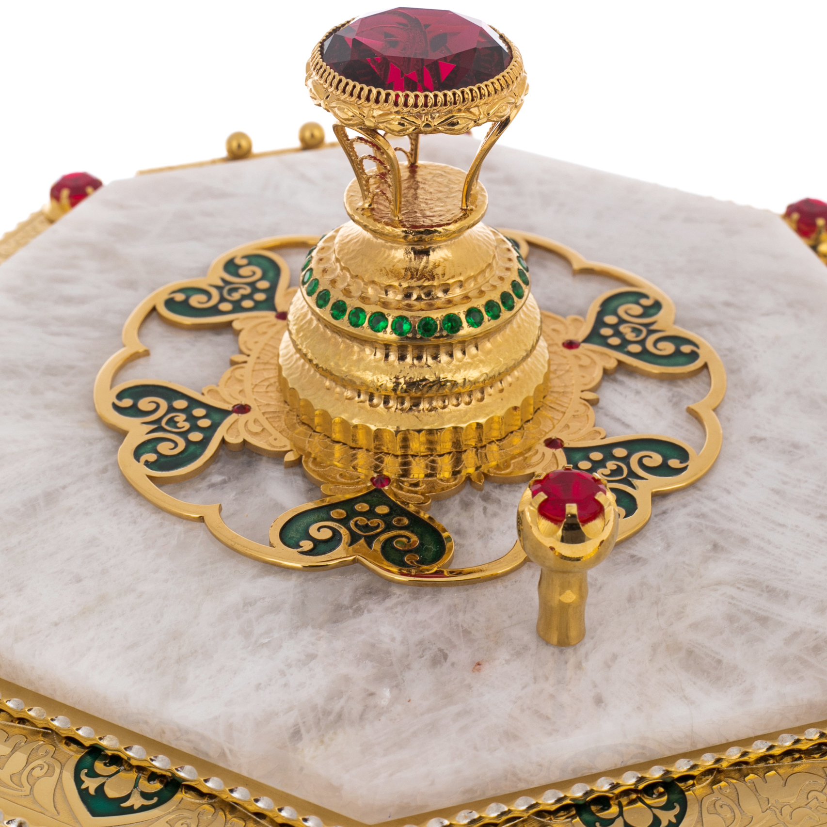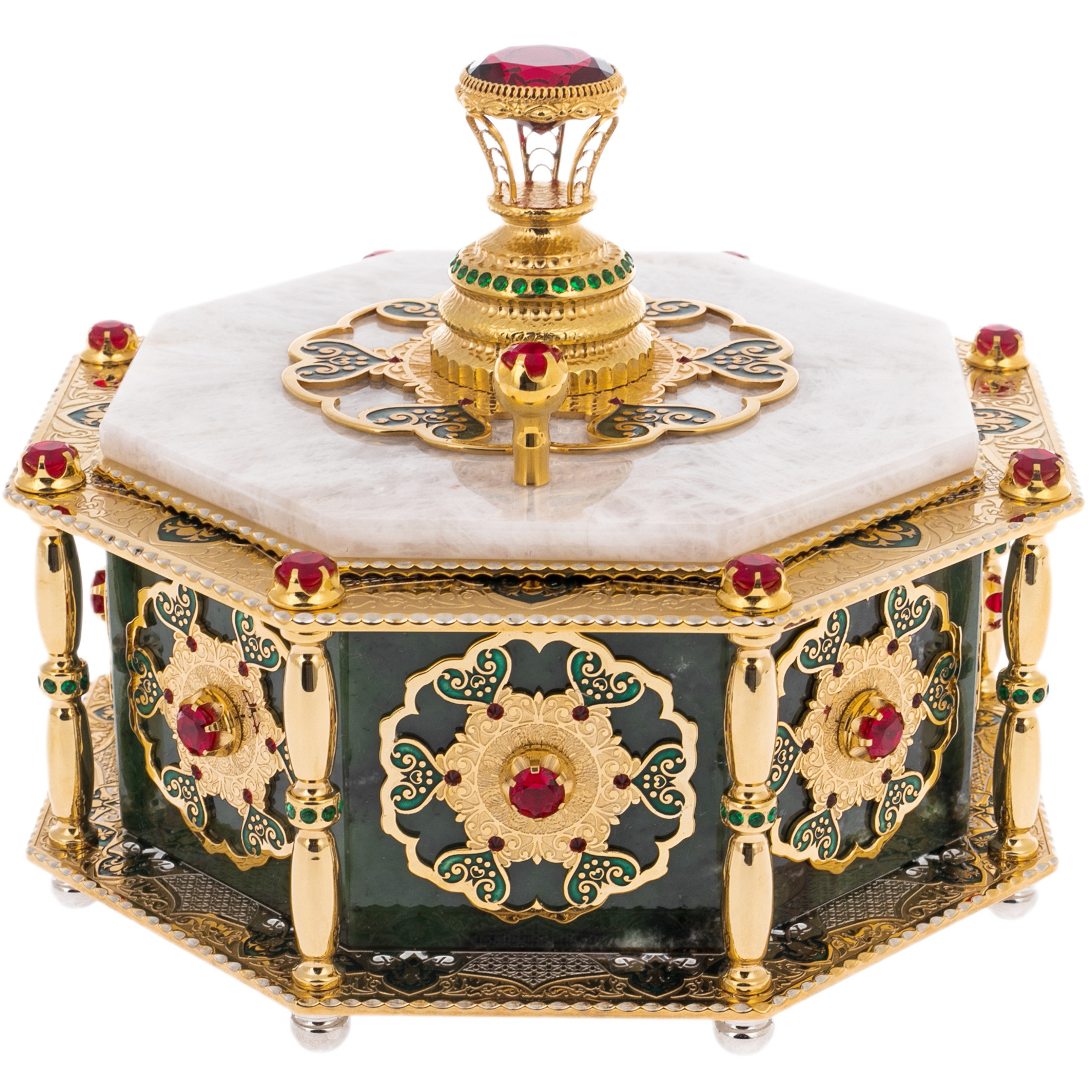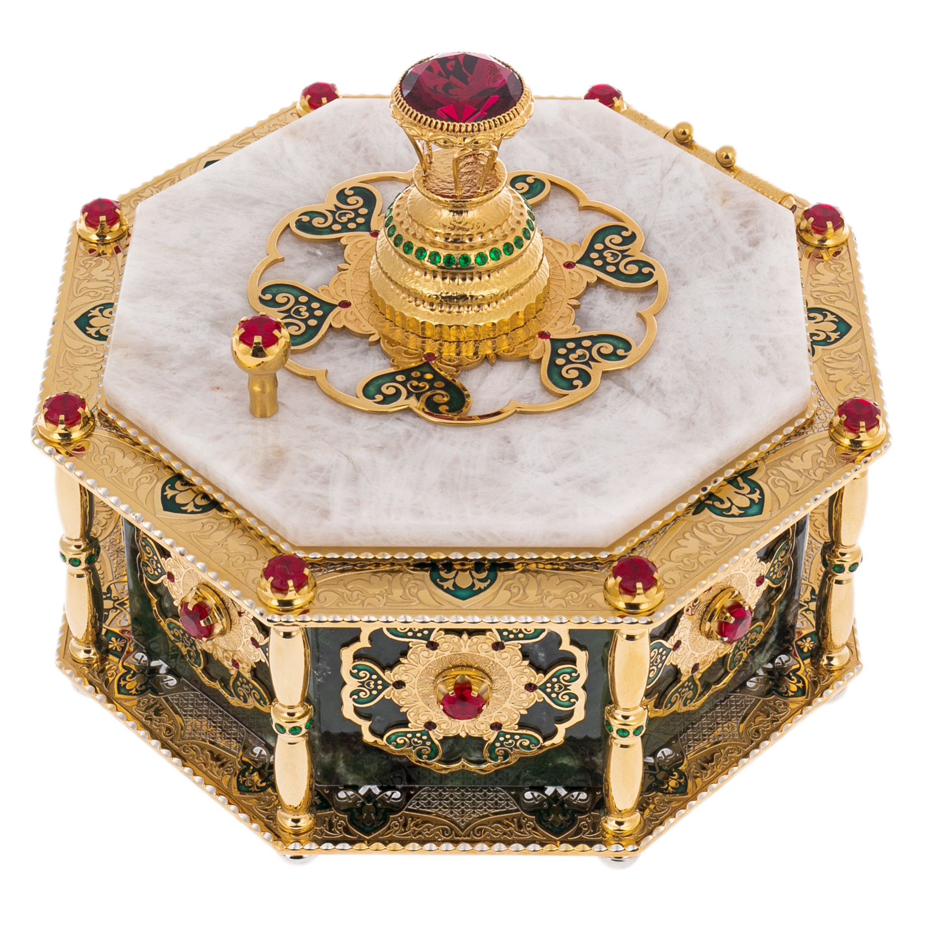 Ларец из льдистого кварца и нефрита "Рубин" Златоуст