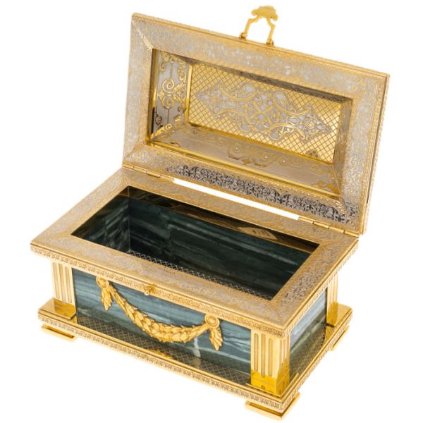 Ларец из малахита "Сказочный восток"Ларец из малахита "Сказочный восток"Изделия изготовлены из природных материалов высокого качества. Филигранная проработка деталей характеризует безупречную работу мастера.