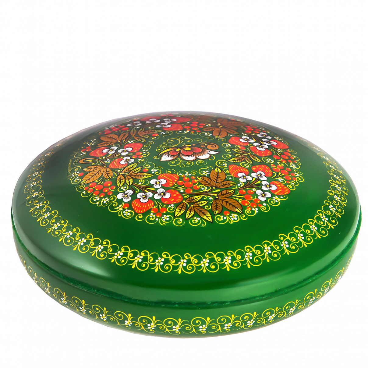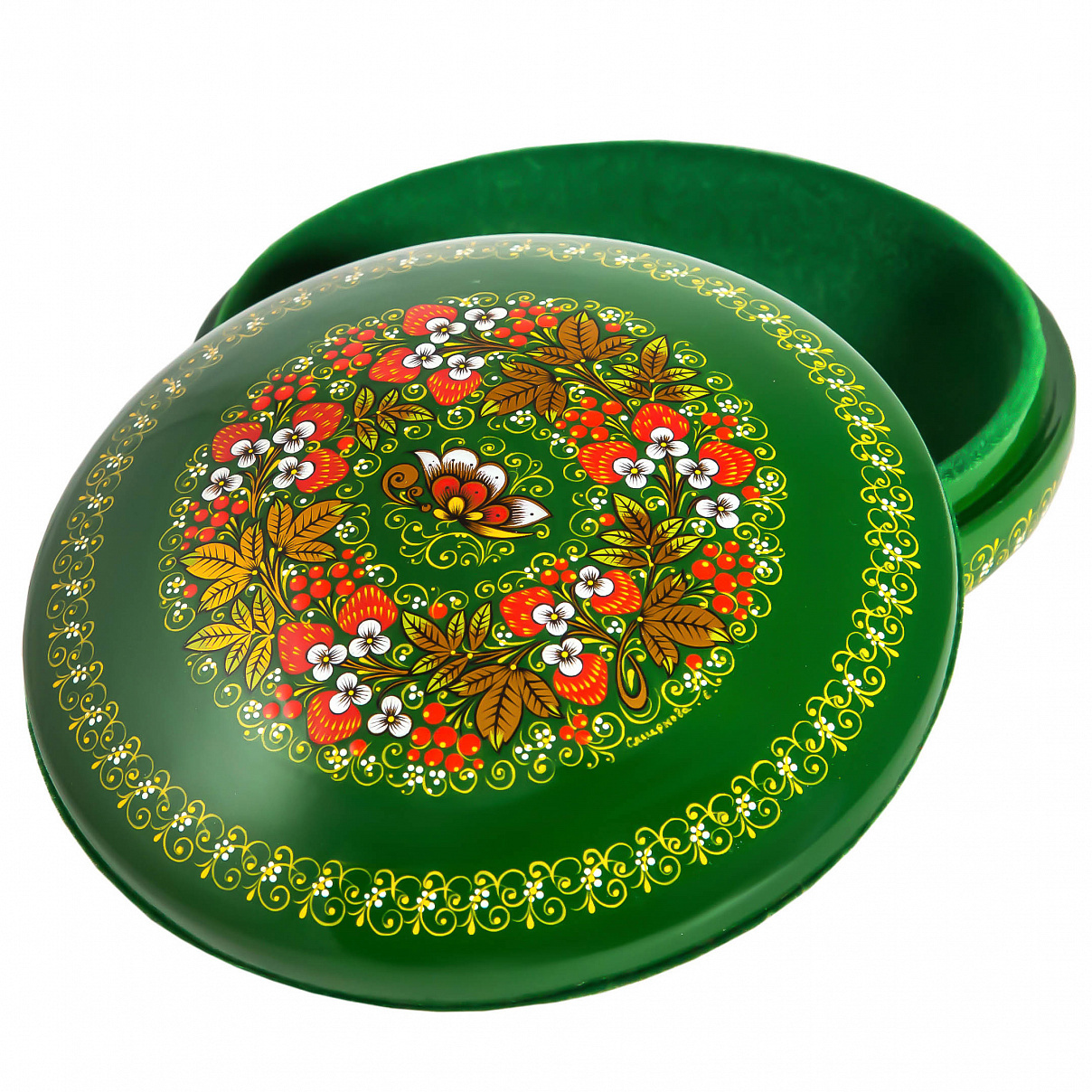 Коробка с миниатюрной росписью «Зеленый фон. Ягоды» хохлома