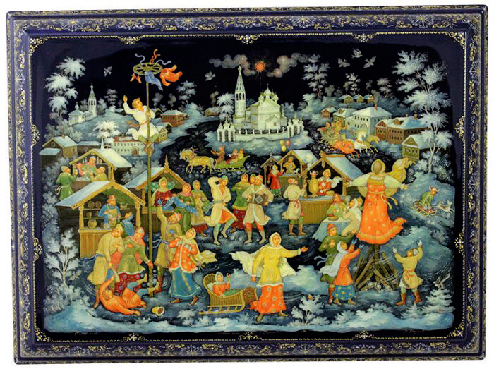 Материалы:папье-маше, темперные краски, лак, сусальное золото.