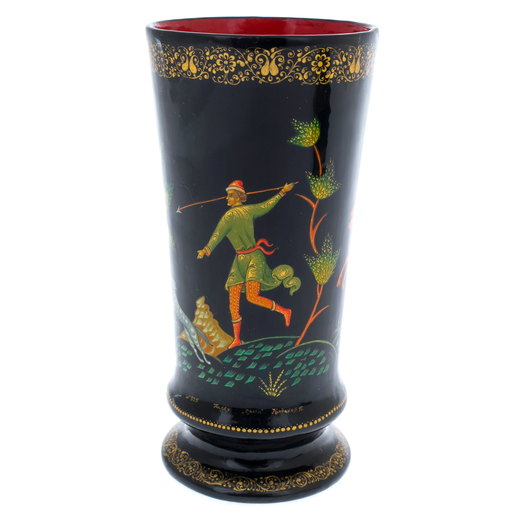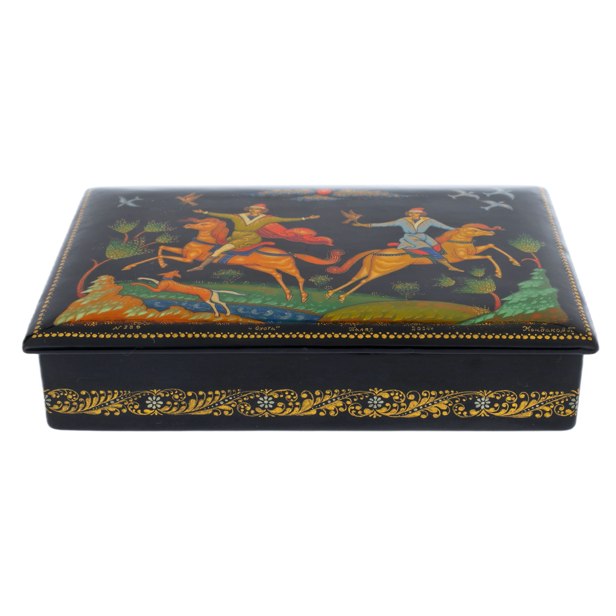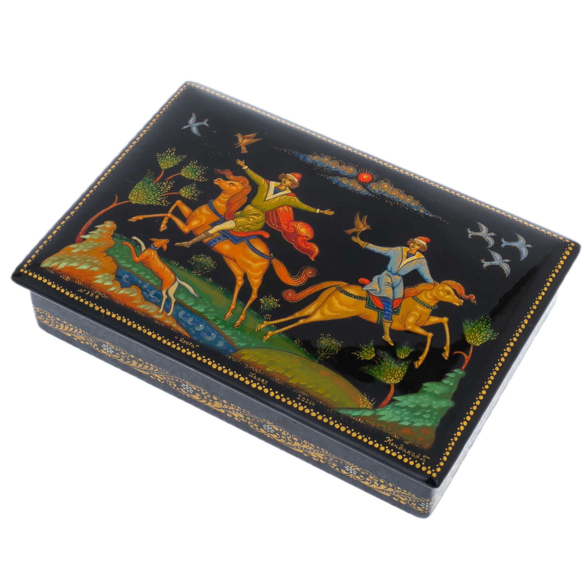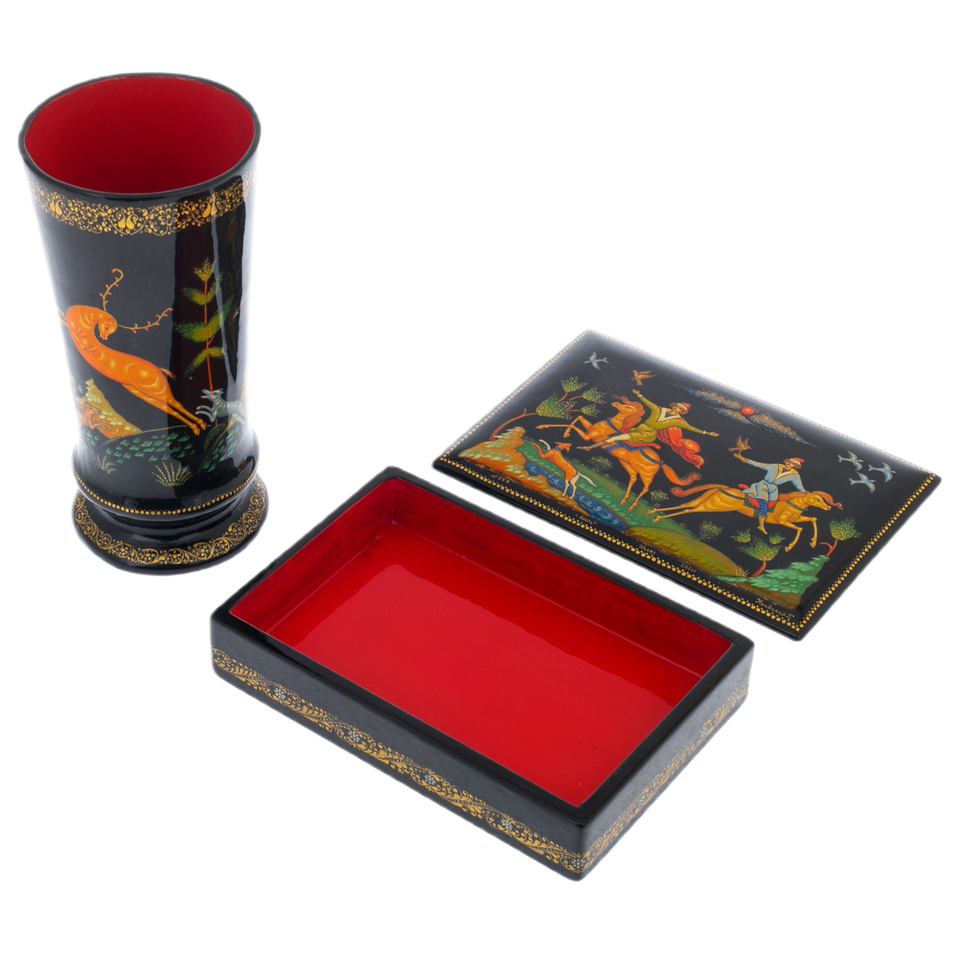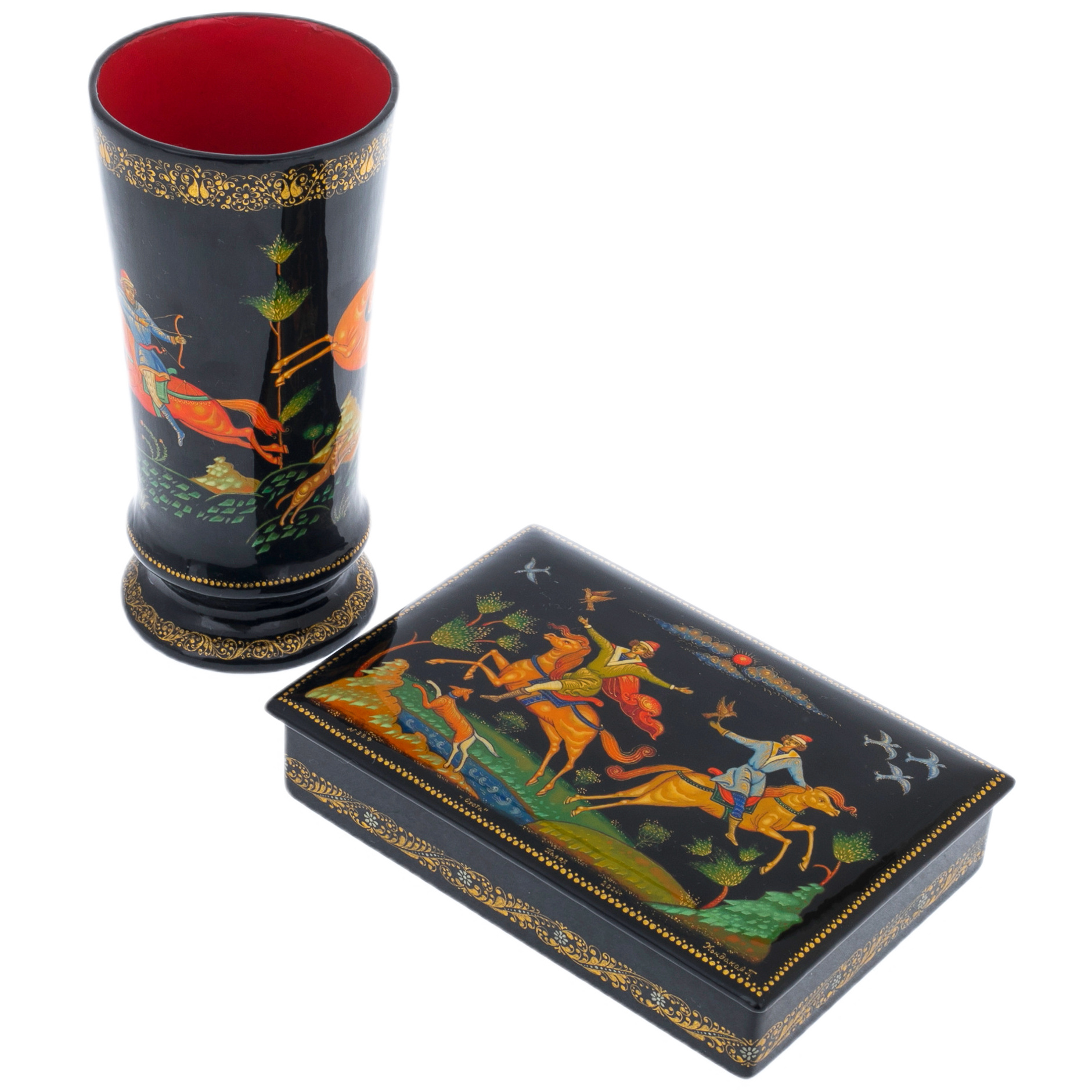 Набор подарочный "Охота" со шкатулкой и вазой, Кондаков П., Палех