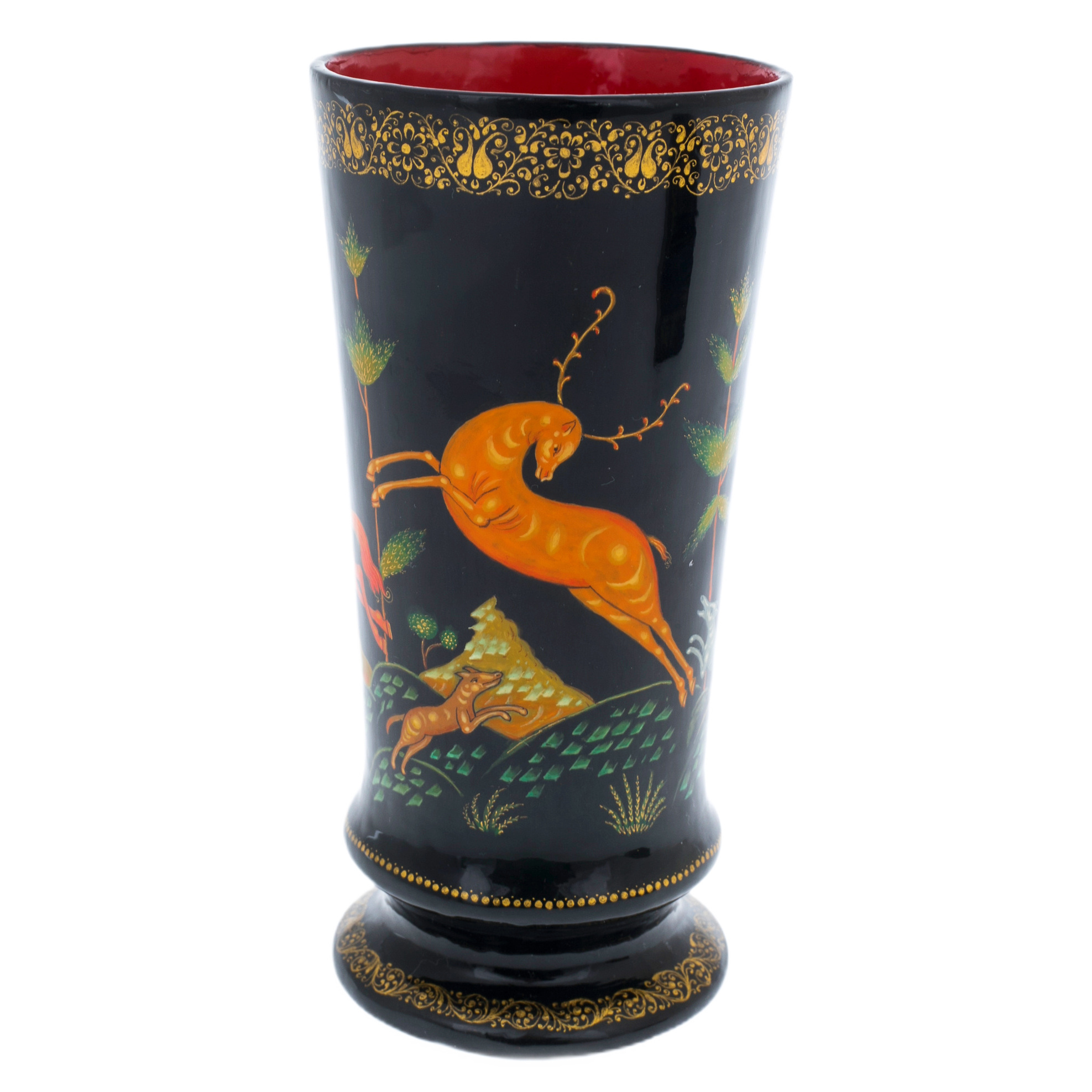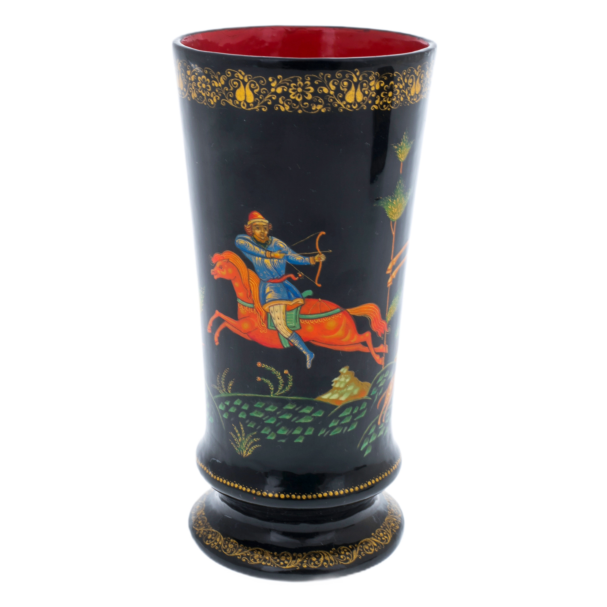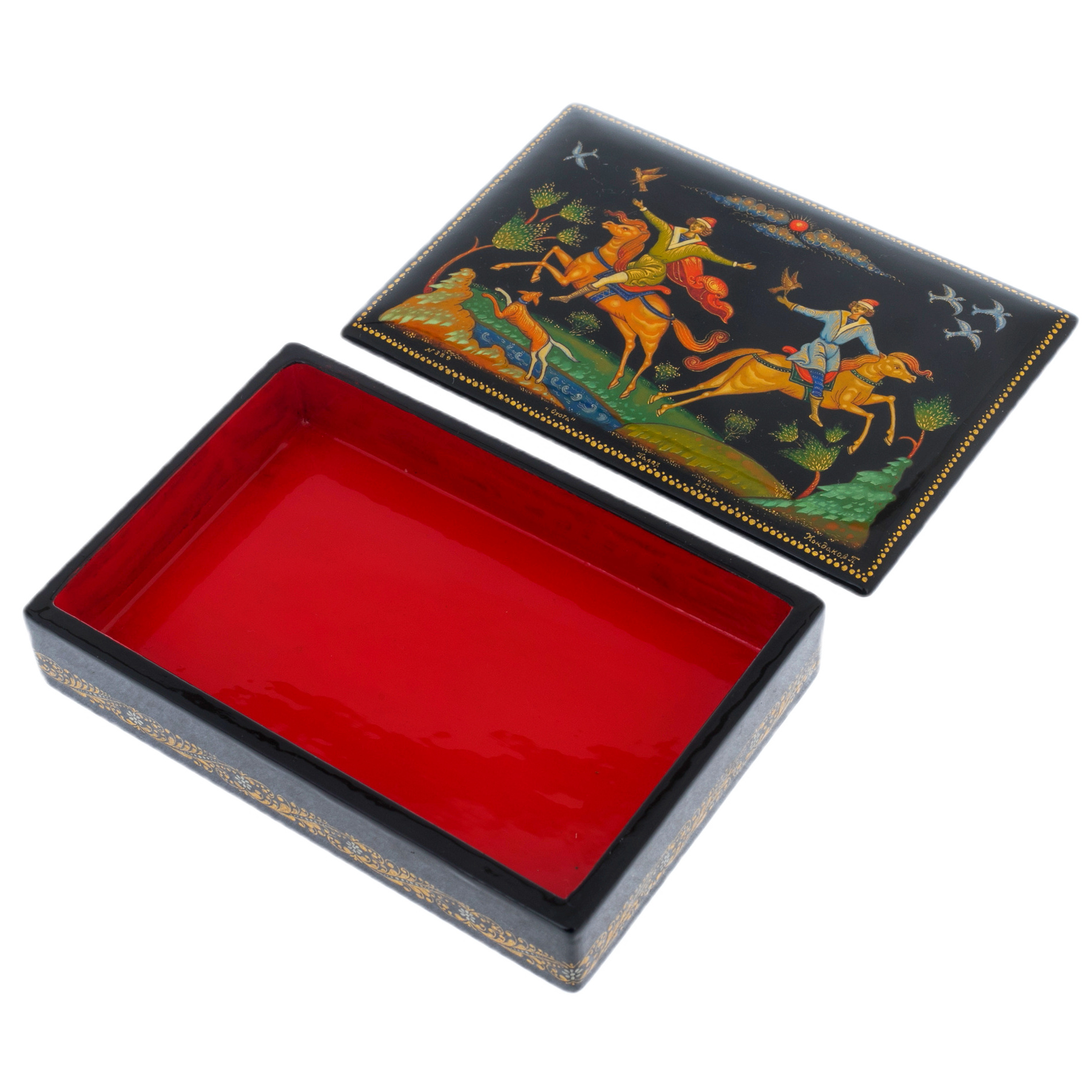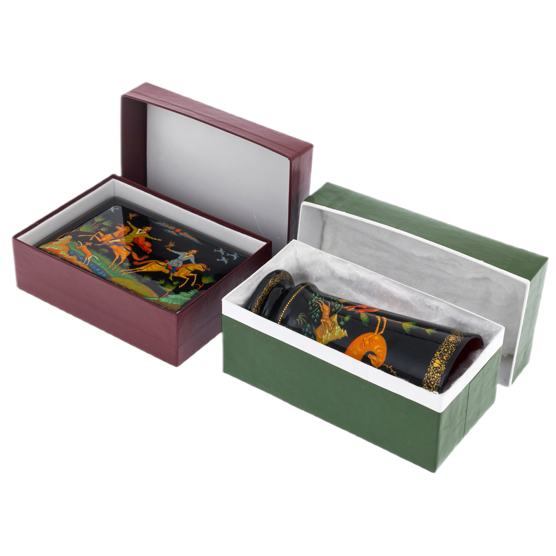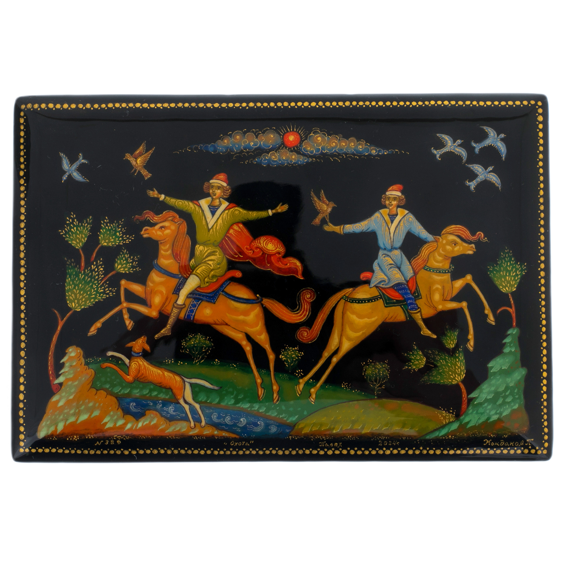 Набор подарочный "Охота" со шкатулкой и вазой, Кондаков П., Палех