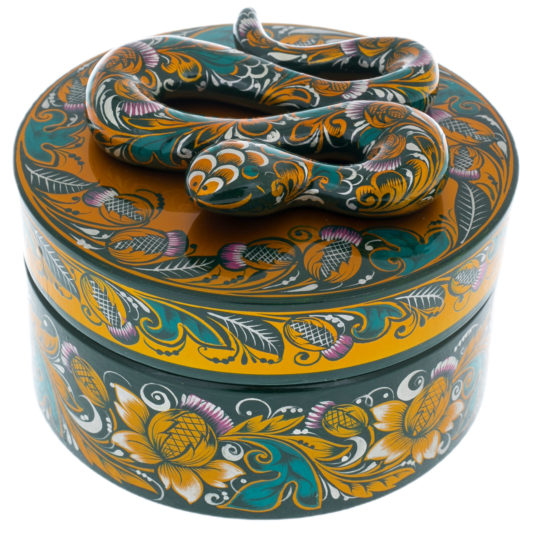 Шкатулка со змеёй в стиле Хохломы — это не просто функциональный аксессуар, а произведение искусства, которое сочетает в себе красоту, мудрость и энергию природы. Она станет выразительным акцентом в интерьере, отражая индивидуальность и утончённый вкус владельца, который ценит подлинное мастерство и глубокий смысл в каждой детали.