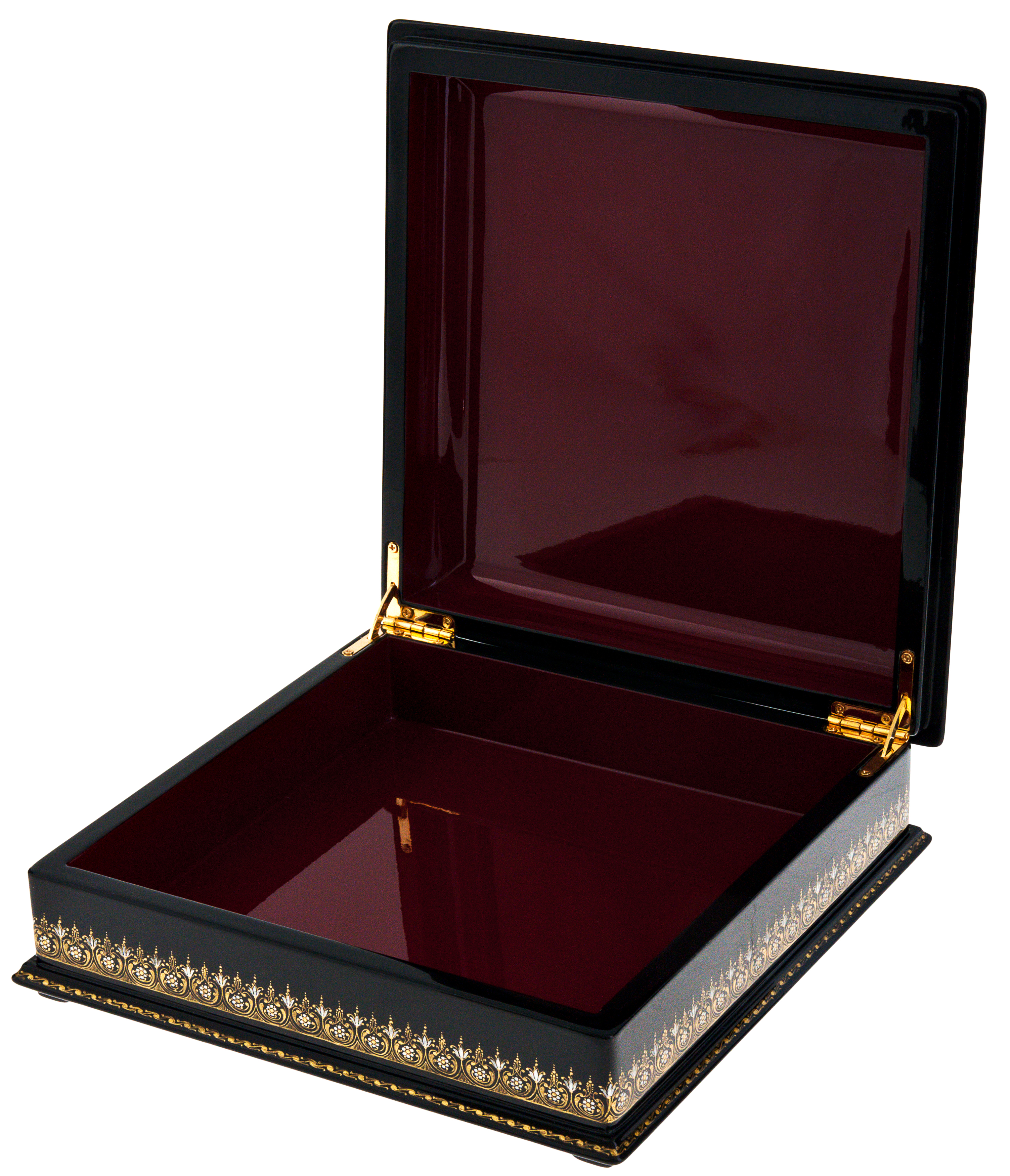 Изделие лаковой миниатюрной живописи является подлинным произведением декоративно-прикладного искусства, выполнено вручную в художественных и технологических традициях палехского старинного иконописного промысла, бытовавшего в данной местности с XVI века, и лаковой темперной миниатюрной живописи на папье-маше начала ХХ века.