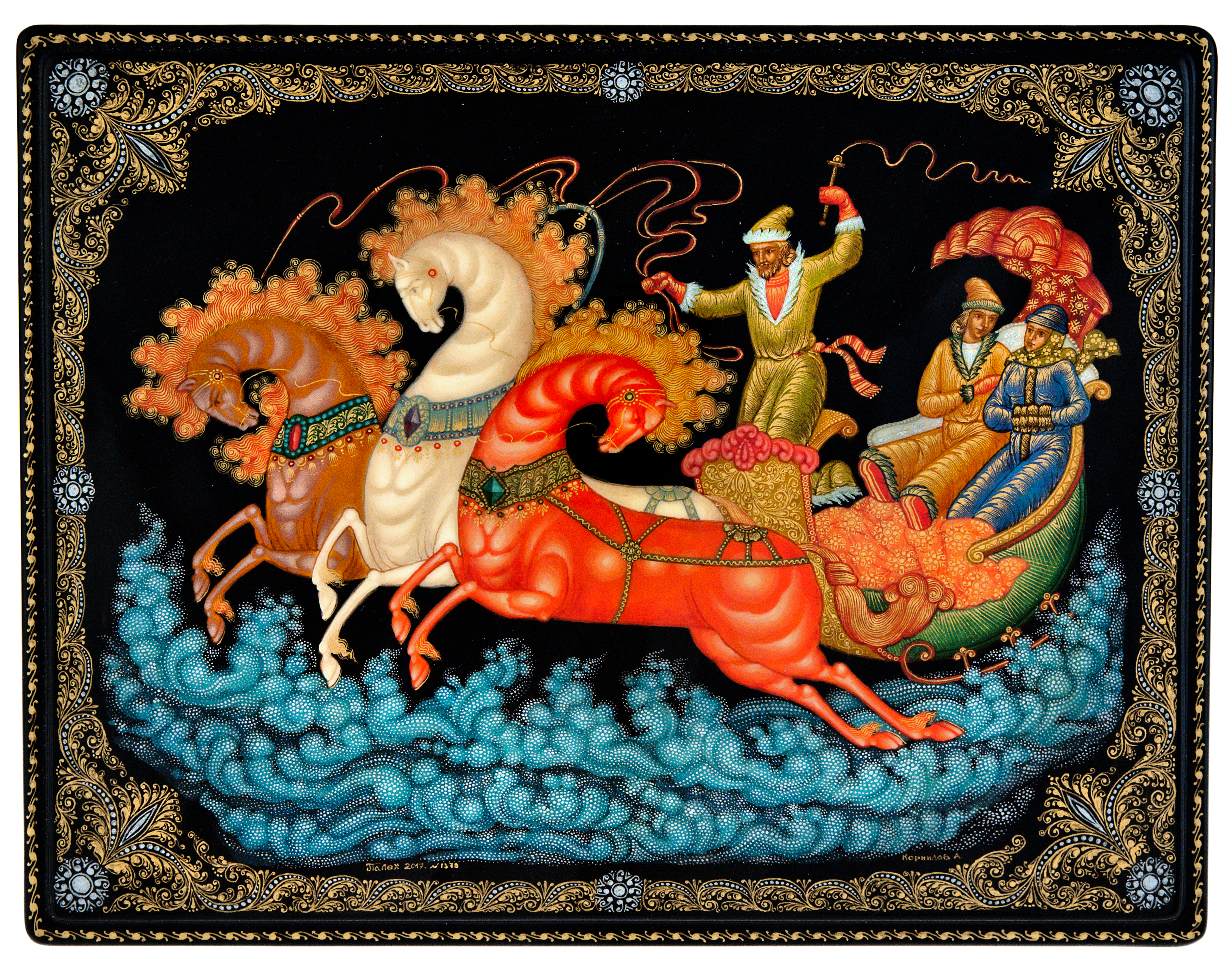 Шкатулка "Тройка" Корнилов, Палех