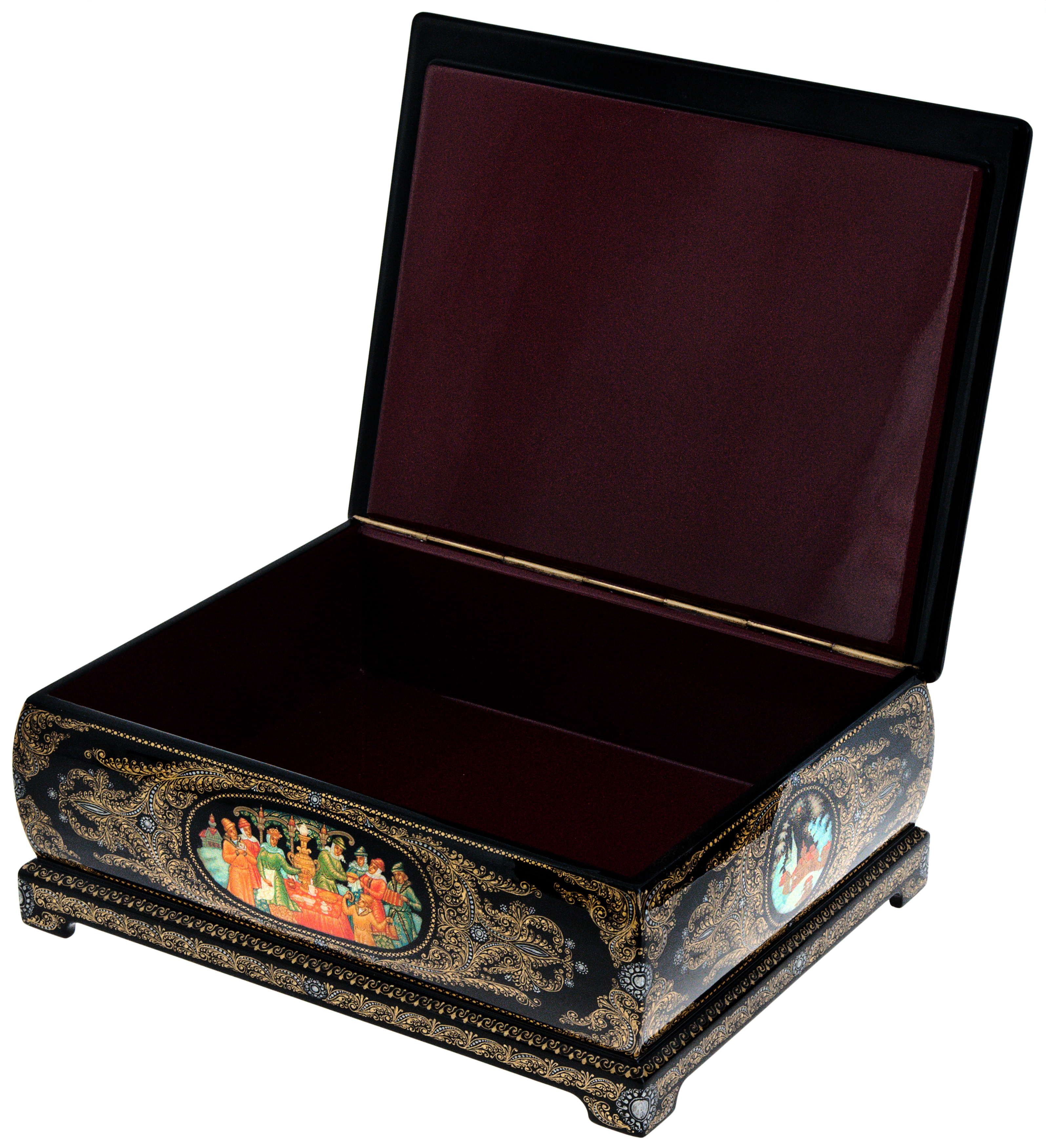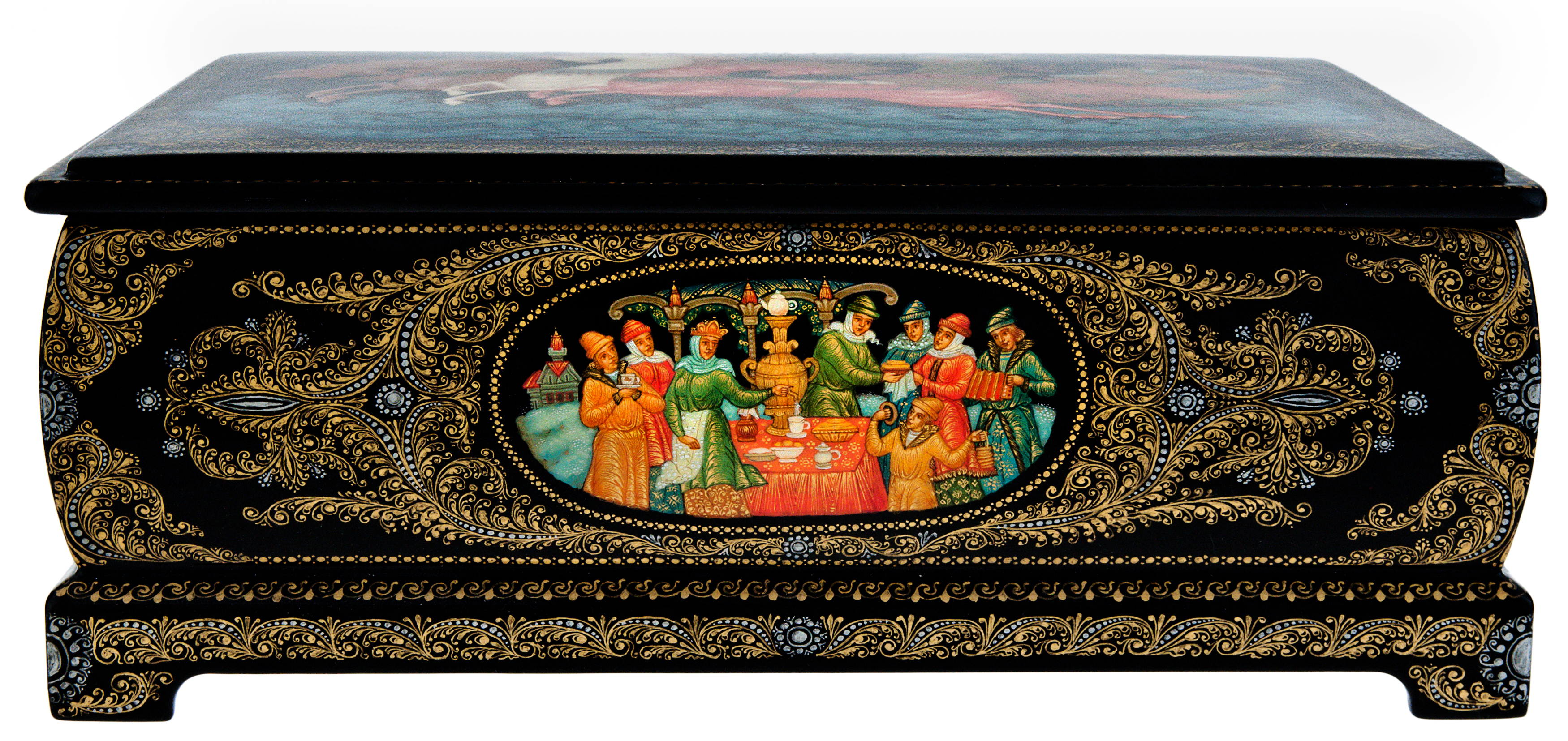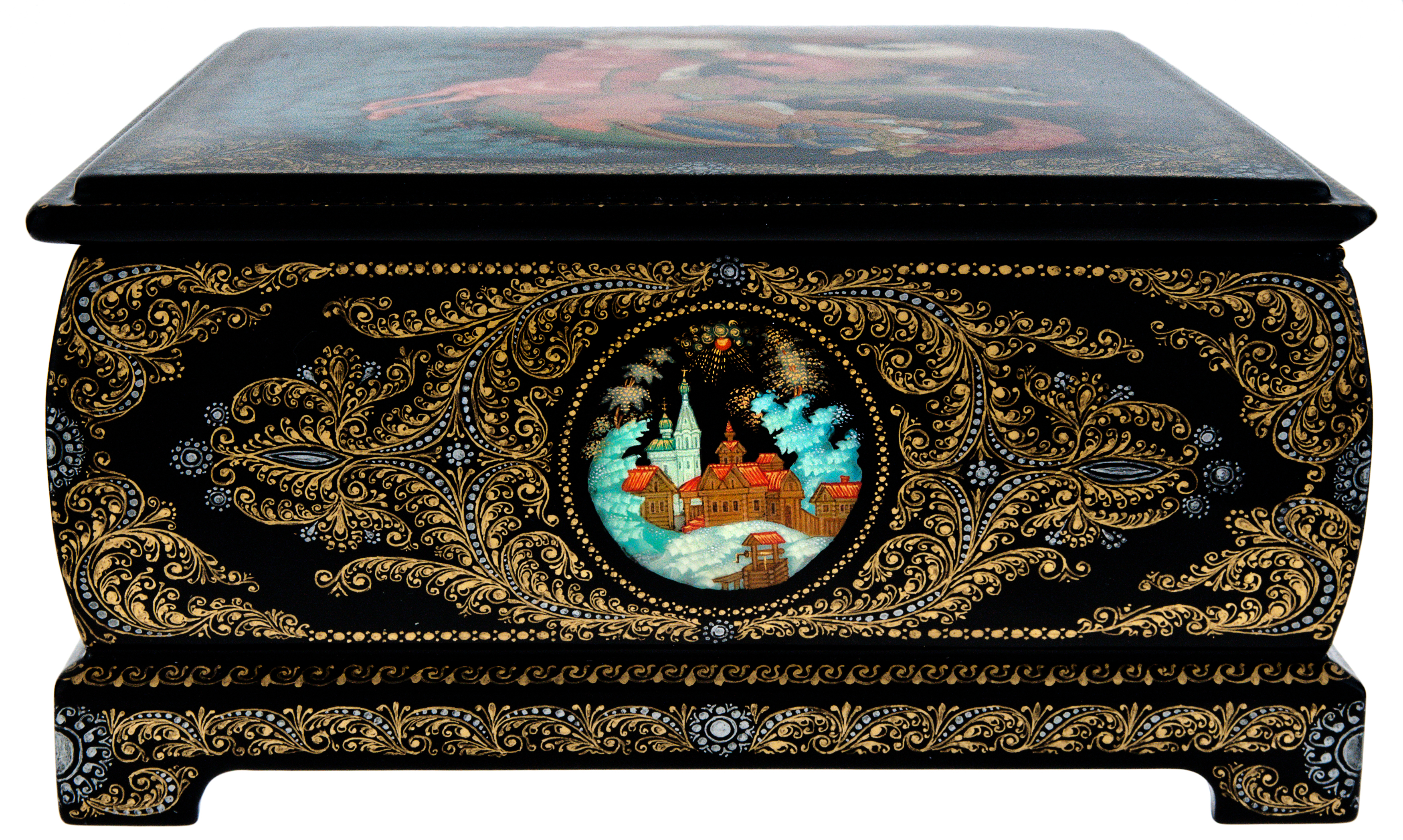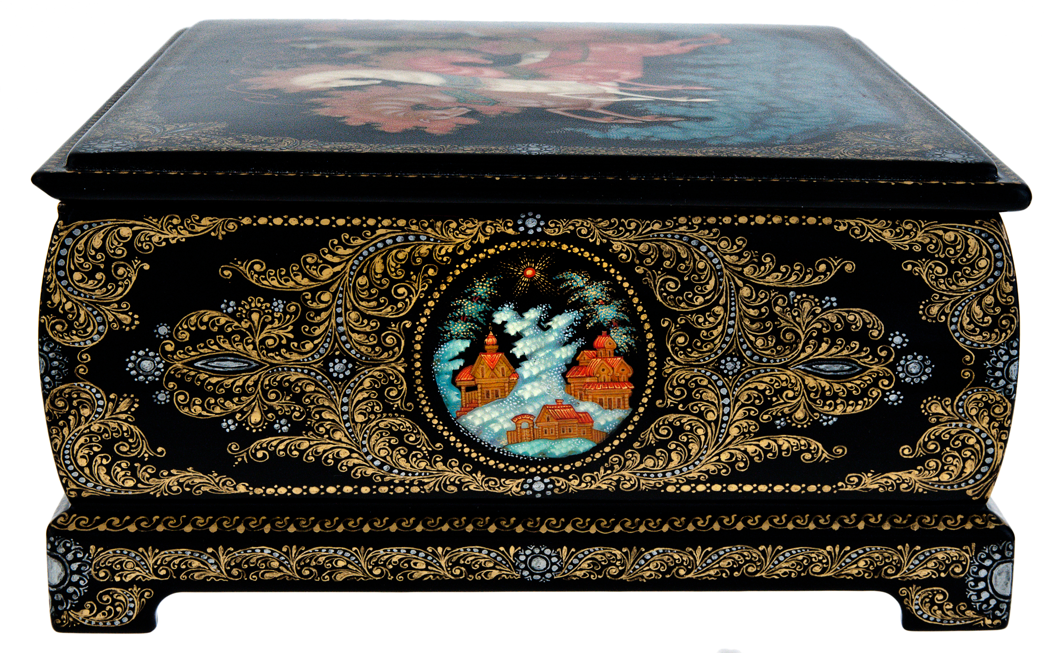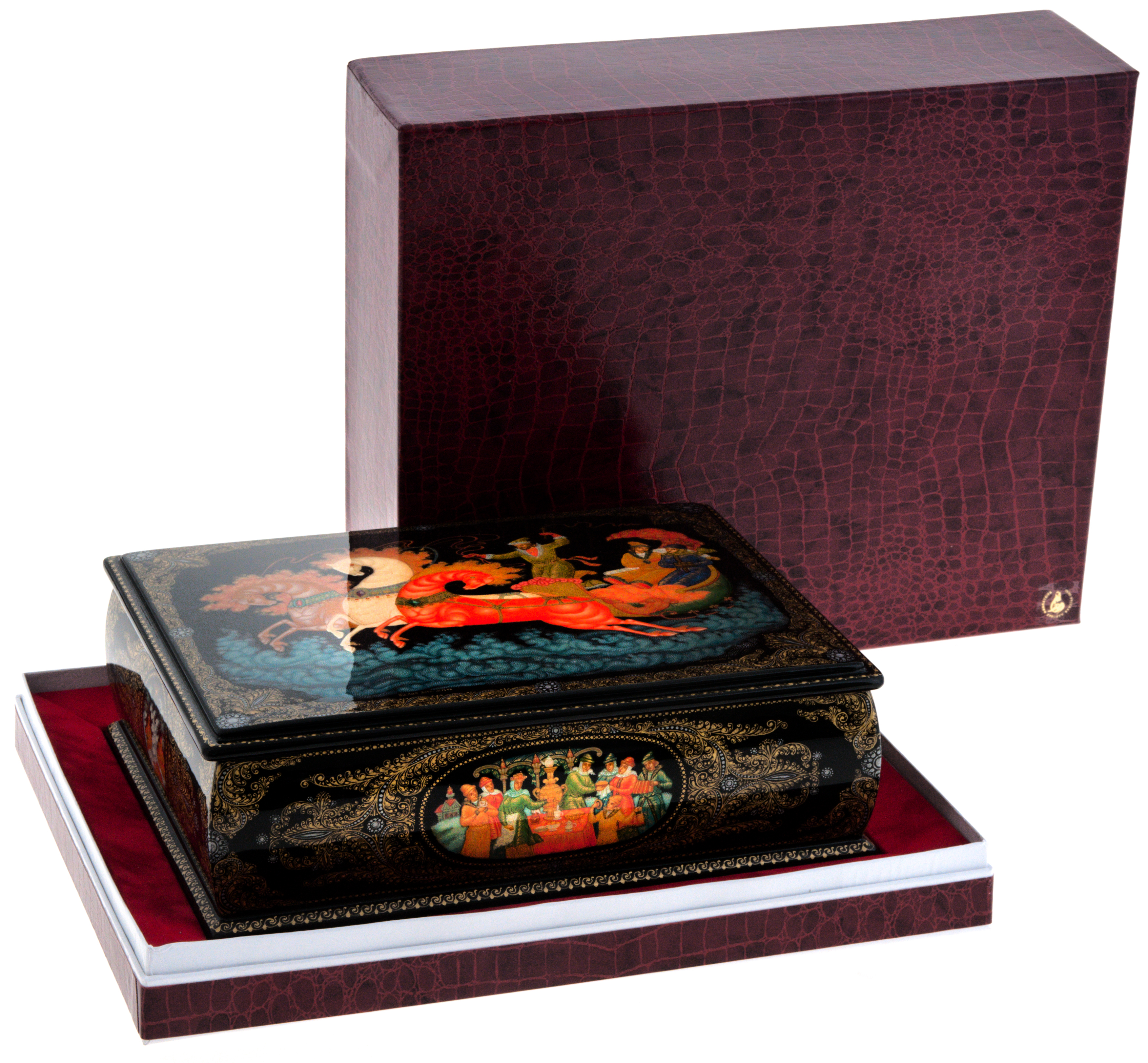 Изделие лаковой миниатюрной живописи является подлинным произведением декоративно-прикладного искусства, выполнено вручную в художественных и технологических традициях палехского старинного иконописного промысла, бытовавшего в данной местности с XVI века, и лаковой темперной миниатюрной живописи на папье-маше начала ХХ века.
