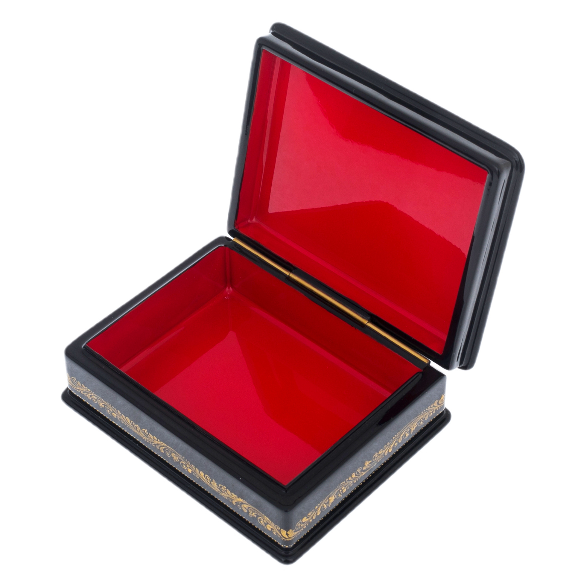 Глубокий черный фон корпуса, обрамленный тонким золотым орнаментом, напоминает о недоступной загадочности ночи, в которой скрываются древние тайны. Внутренняя часть шкатулки — словно неожиданный взрыв страсти и глубины. Ее алые стенки вызывают ассоциации с благородным рубином, заключенным в оболочку ночи. Этот насыщенный красный цвет символизирует жизнь и силу, скрытые в драгоценных воспоминаниях и надежно оберегаемые.