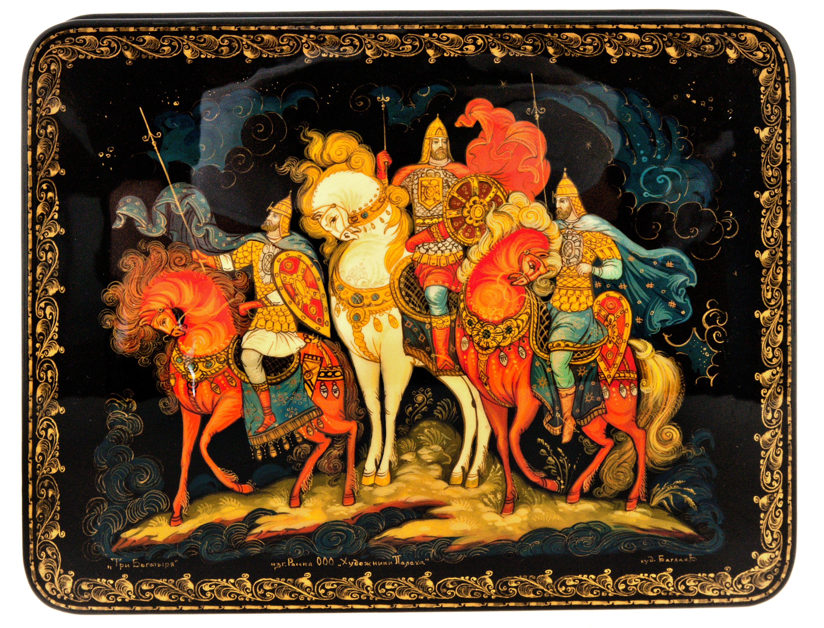 Шкатулка "Три богатыря" Палех