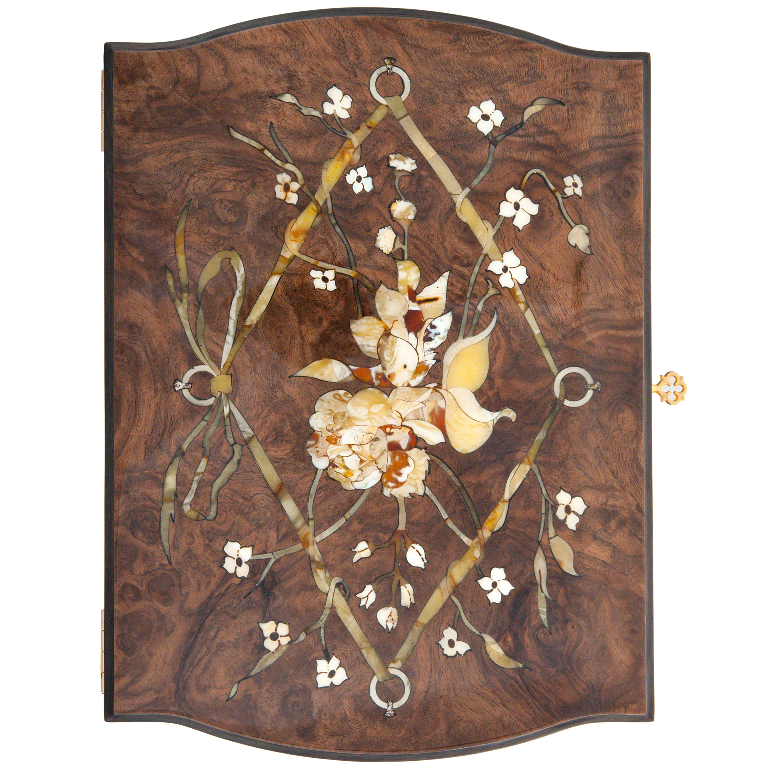 Материалы:корень ореха, ножки и кант - мореный дуб (возраст более 2100 лет), янтарь (возраст более 42 млн лет), янтарный композит.