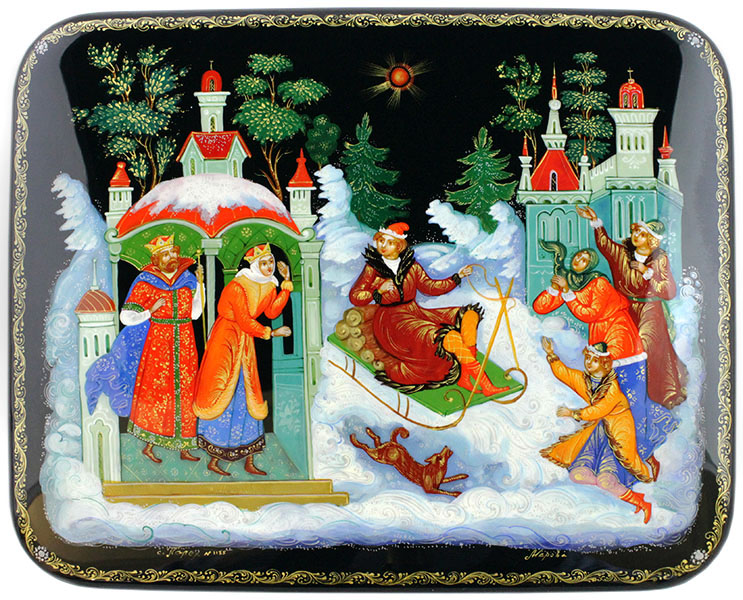 Материалы:папье-маше, темперные краски, лак, сусальное золото.