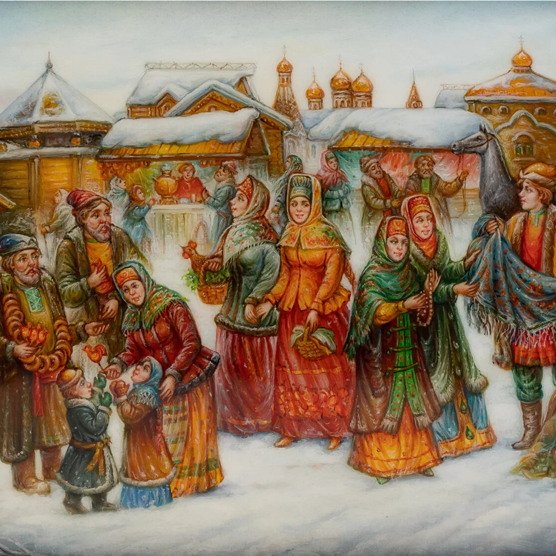 Шкатулка "Ярмарка" Буцинский, Федоскино