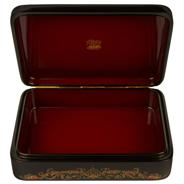 Каждая шкатулка уникальна, проходит контроль качества Художественного совета Фабрики Федоскино, имеет индивидуальный номер и фирменный знак.