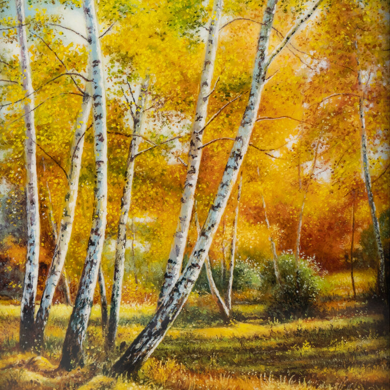 Шкатулка "Березовая роща" Пахомов, Федоскино
