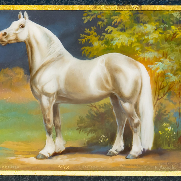 Отличительная черта Федоскинской миниатюры — реализм, достигнутый с помощью сложной многослойной масляной живописи. На эту живописную базу наносятся нежные отблески сусального золота, серебра, перламутра, создавая эффект свечения и глубины. Каждый штрих становится частью величественной композиции, оживающей в плавных переходах света и тени, подчеркивающих тончайшие детали.