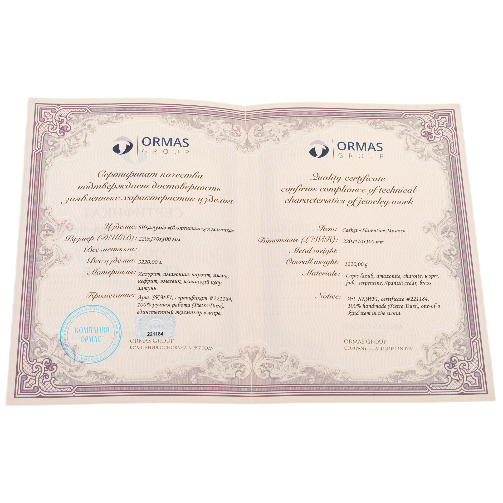 Шкатулка для украшений "Флорентийская мозаика" из ювелирных камней