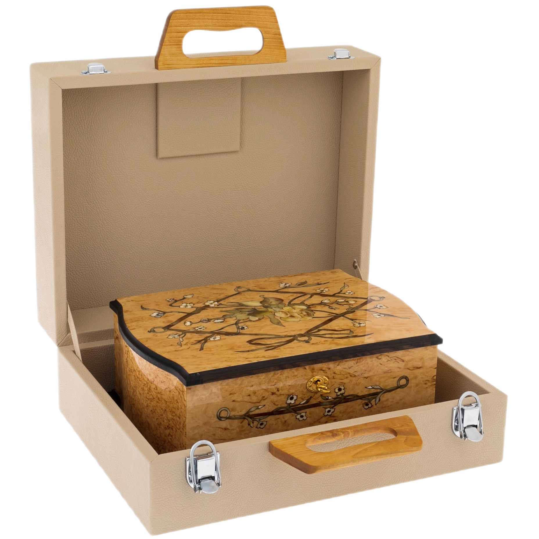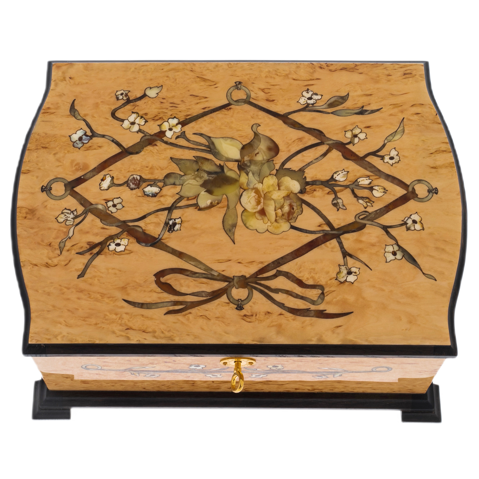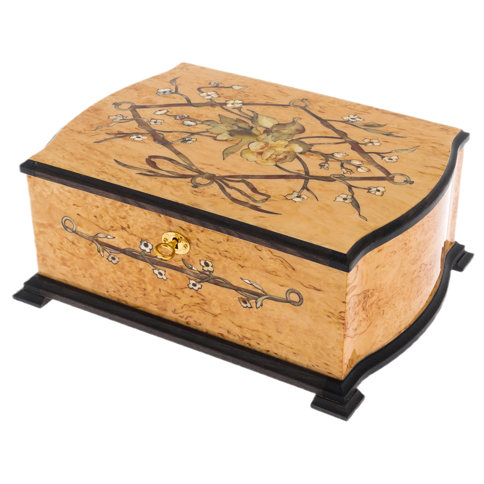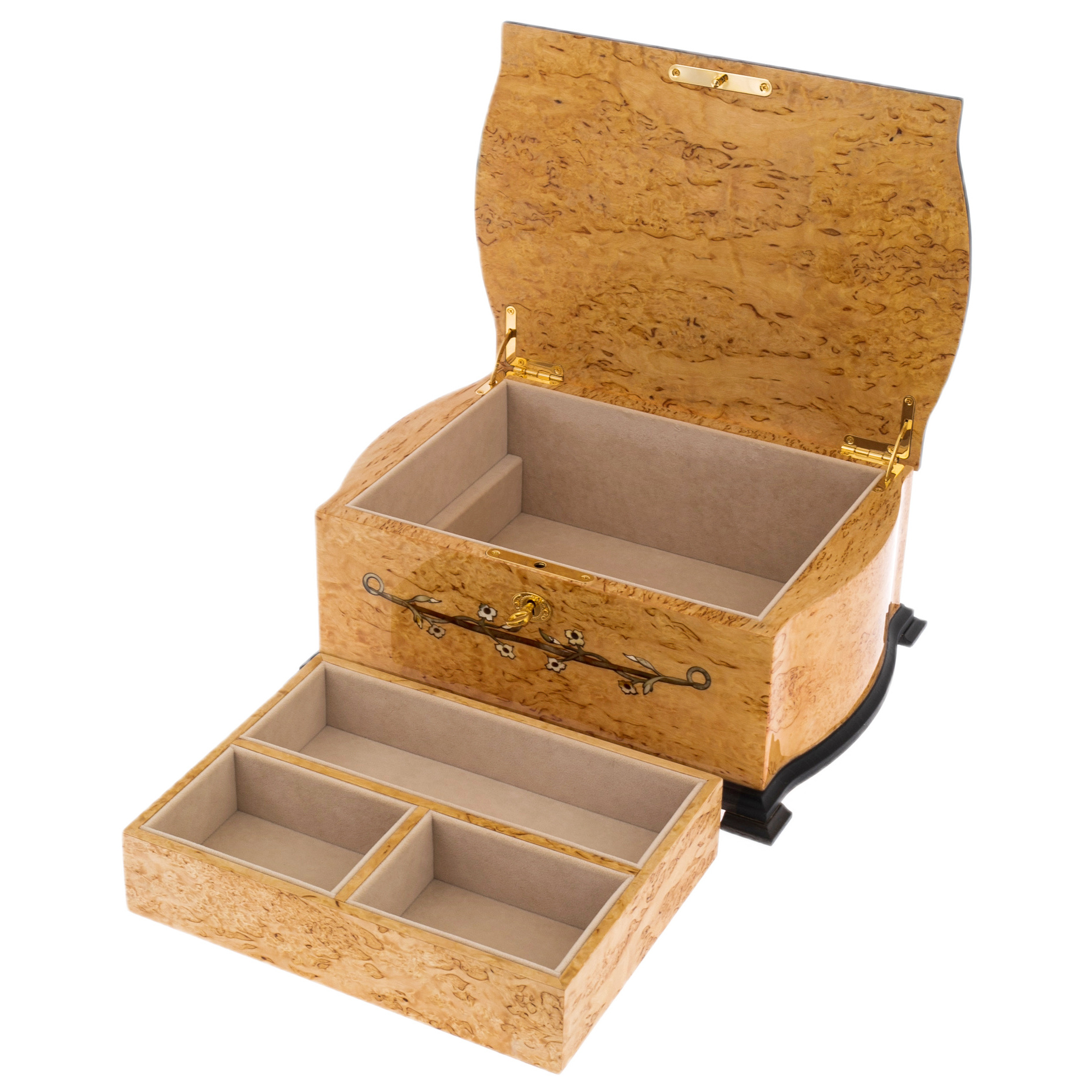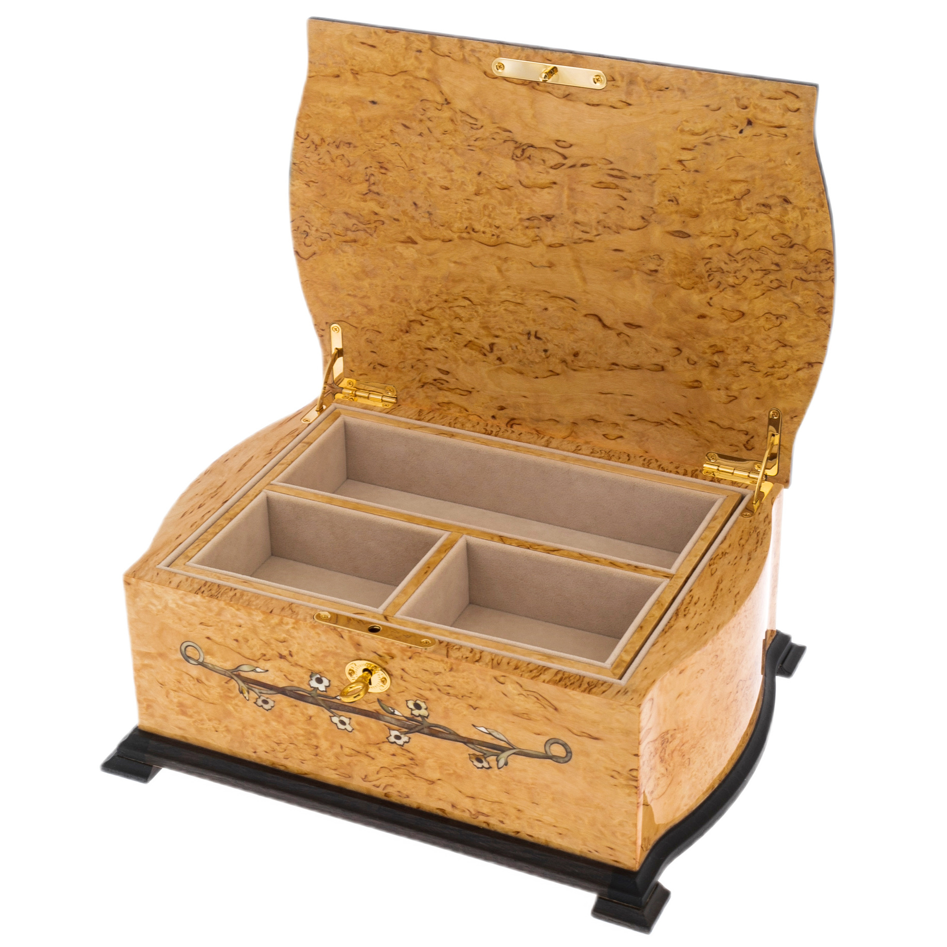 Шкатулка для украшений "Дамская" из карельской березы и янтаря
