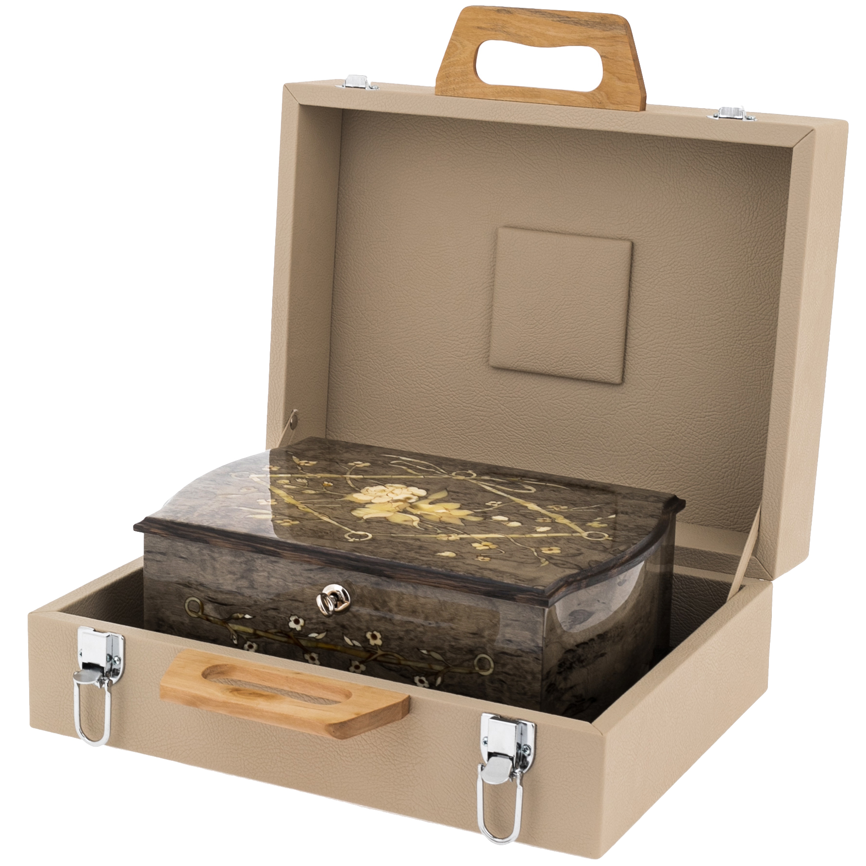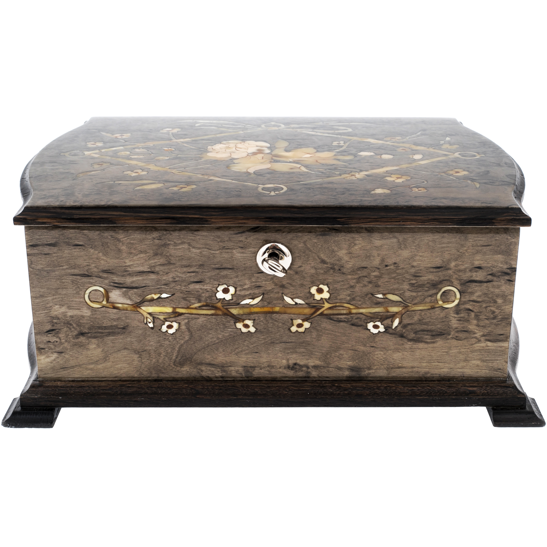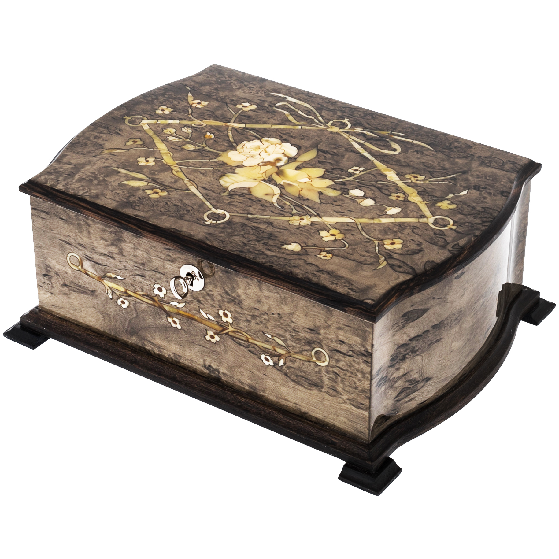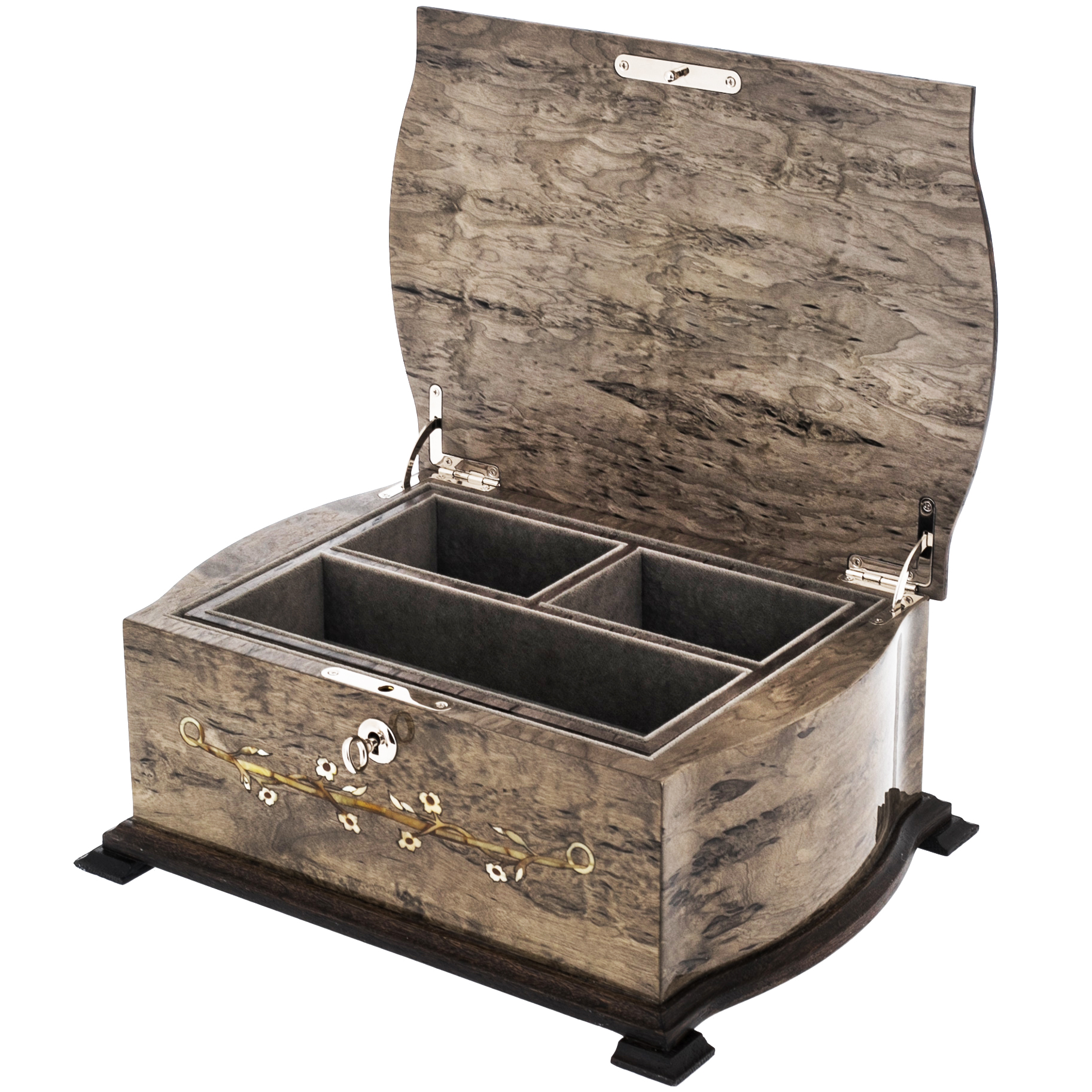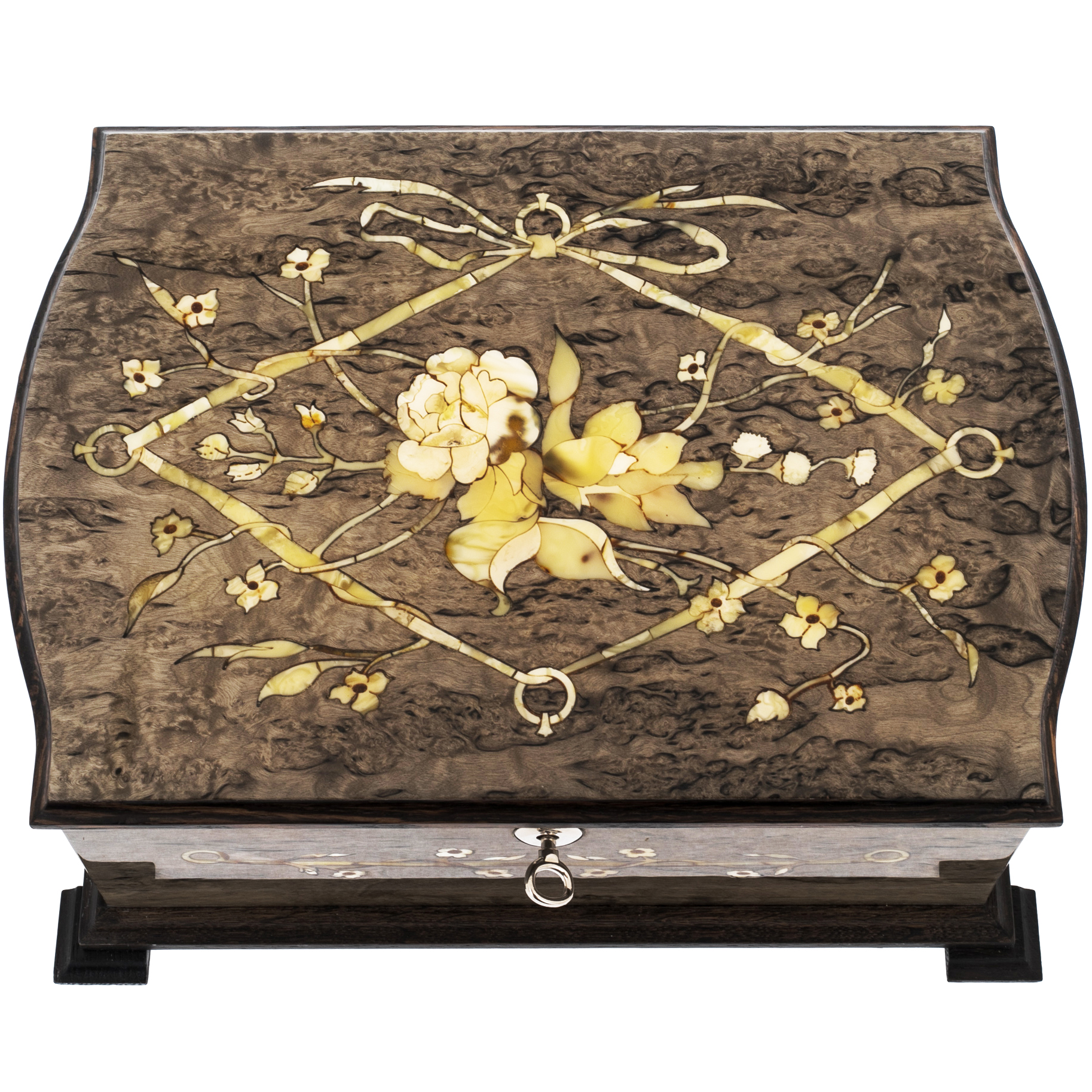 Шкатулка для украшений "Дамская" из карельской березы и янтаря