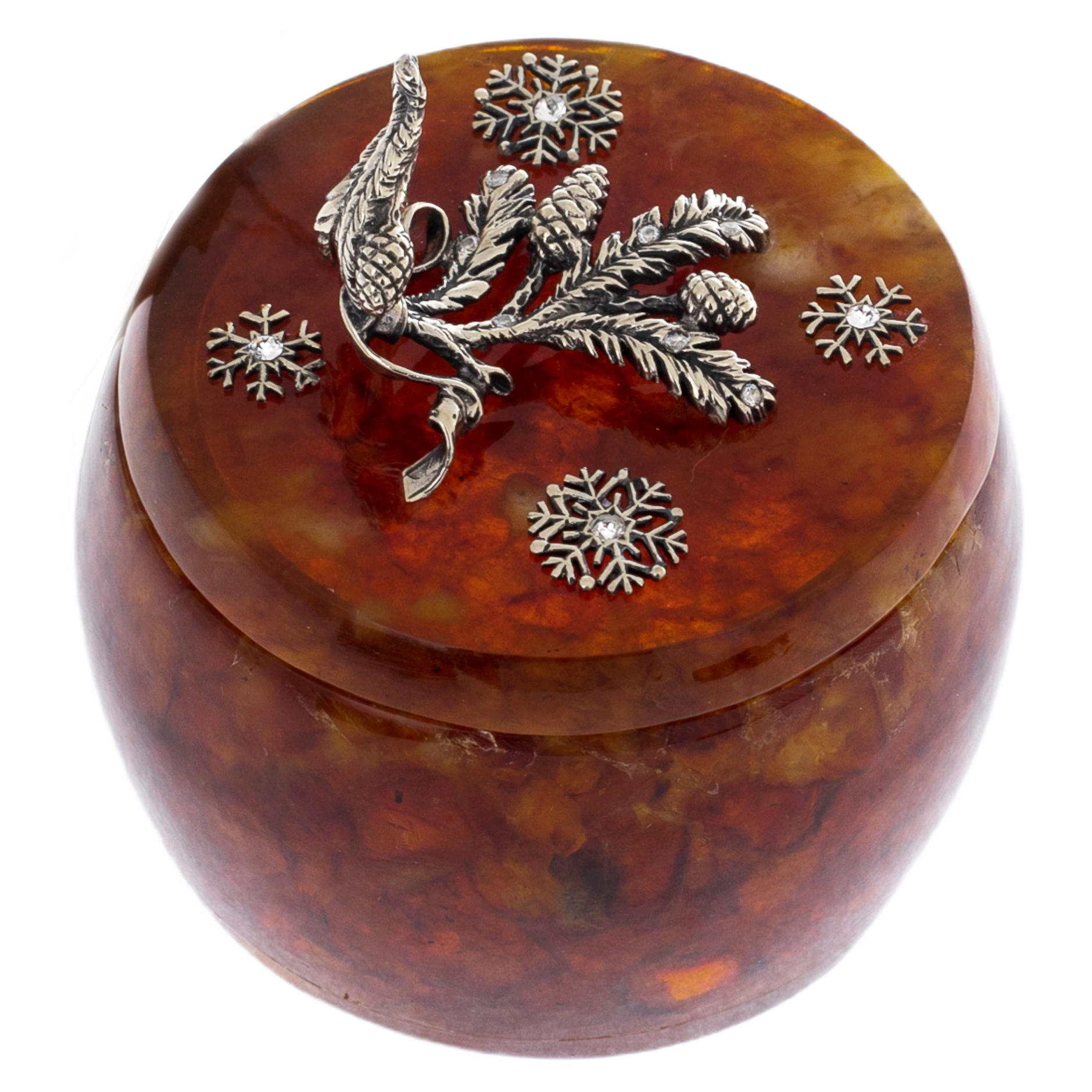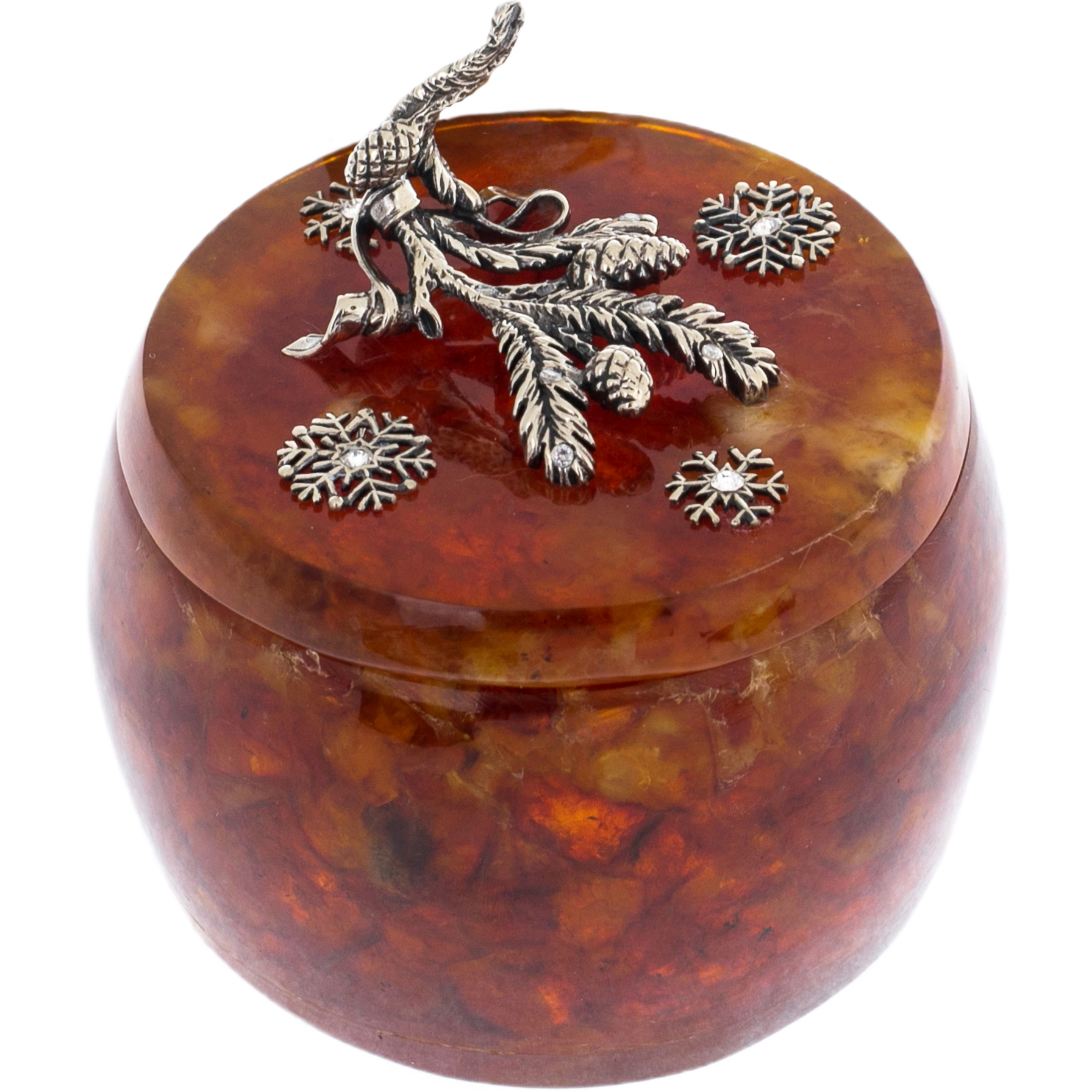 Шкатулка для украшений из янтаря и бронзы "Елочка" с кристаллами Swarovski