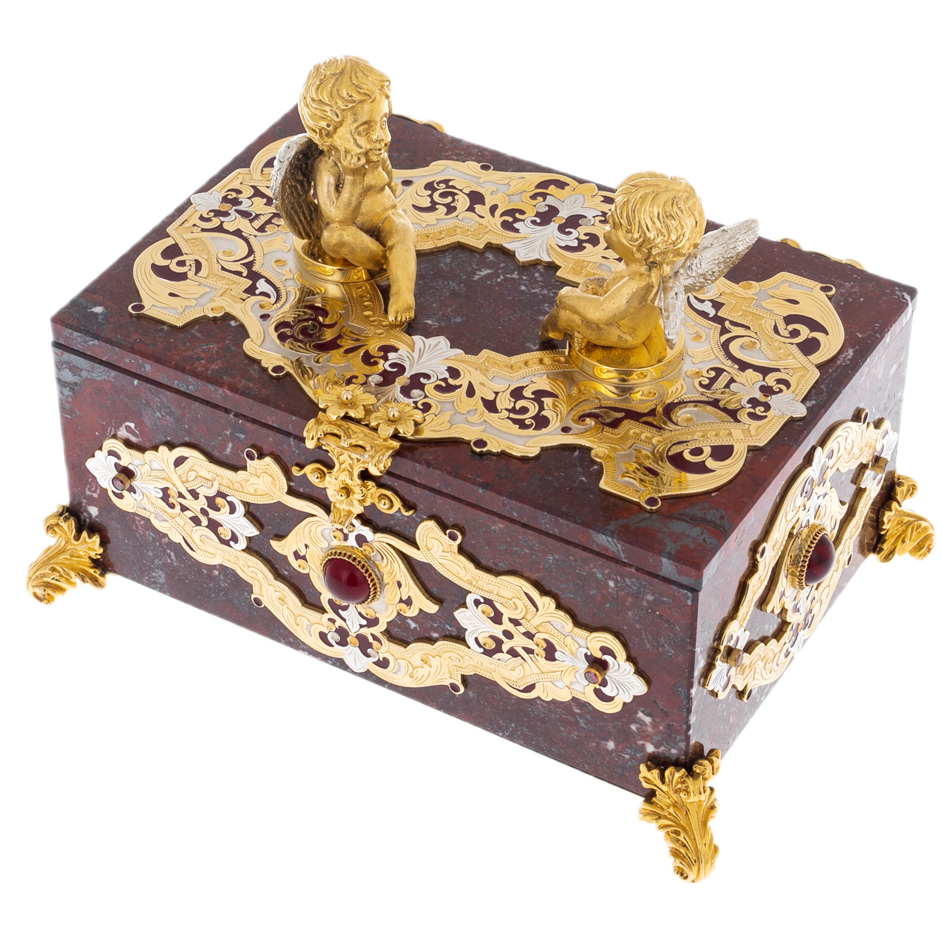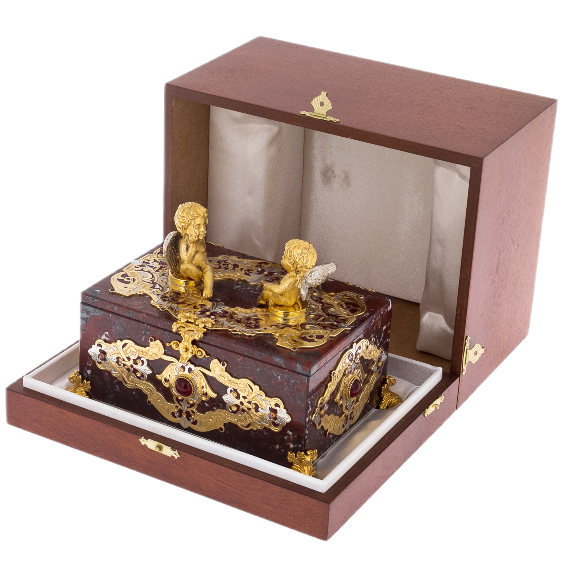Шкатулка для украшений из яшмы "Ангелочки" Златоуст