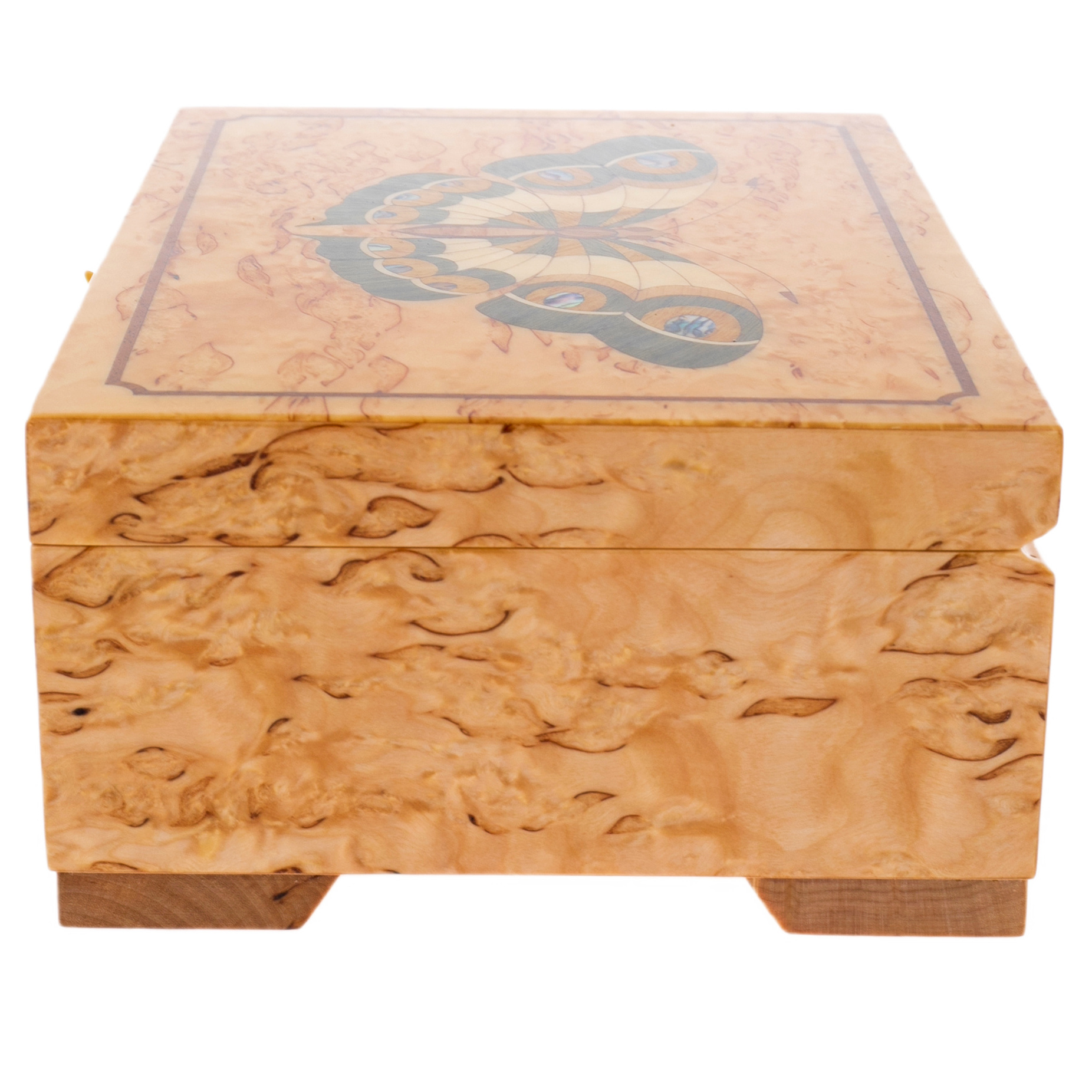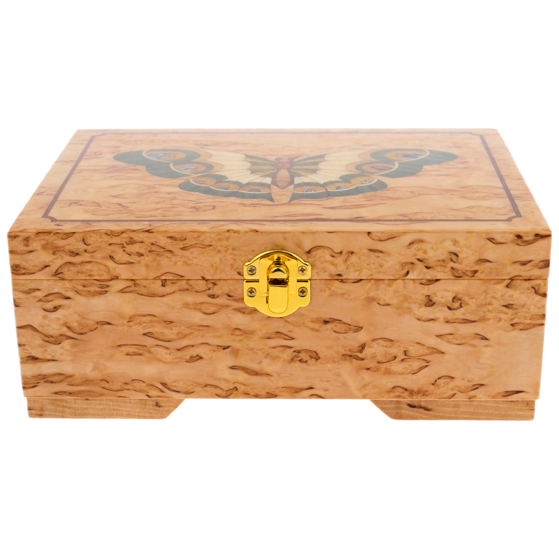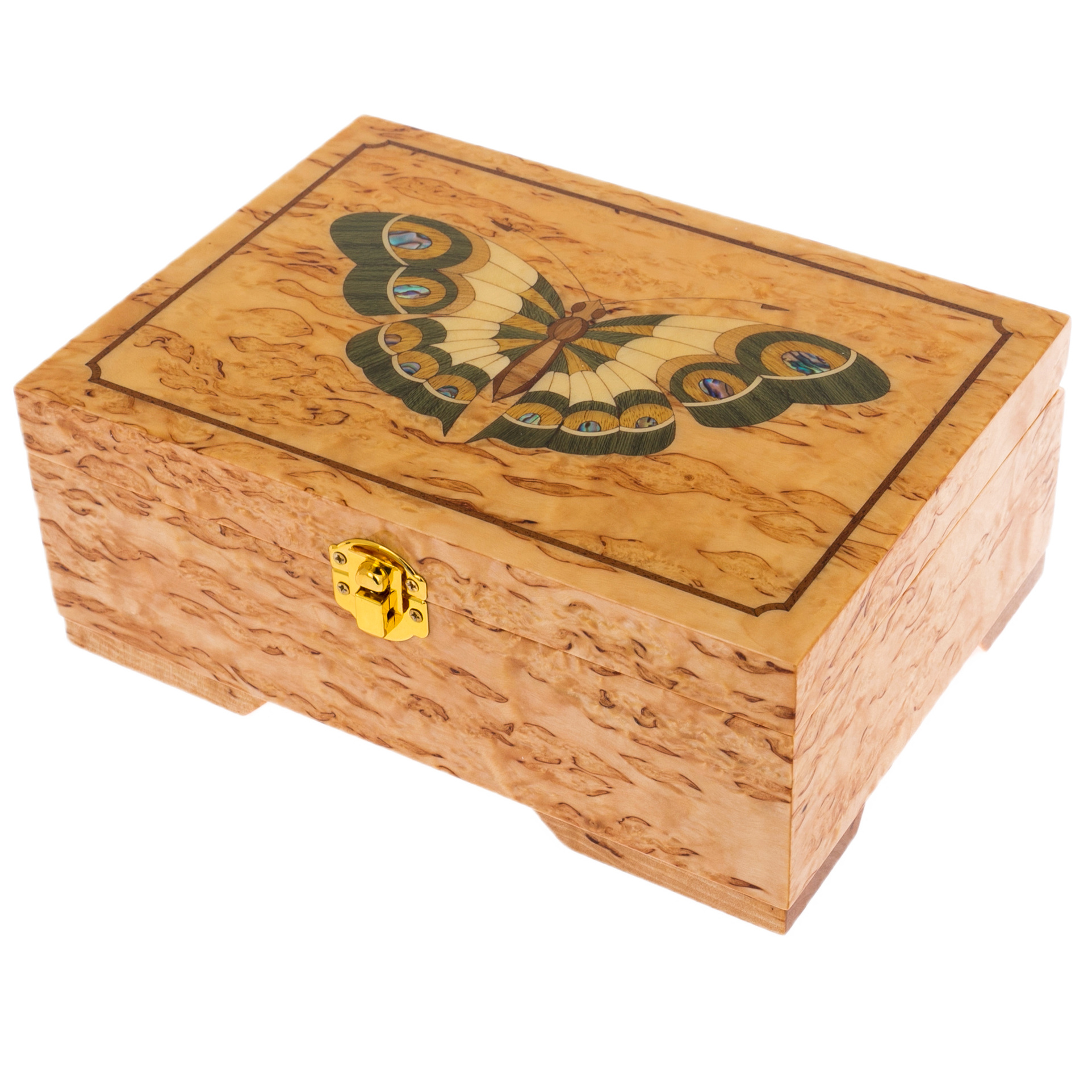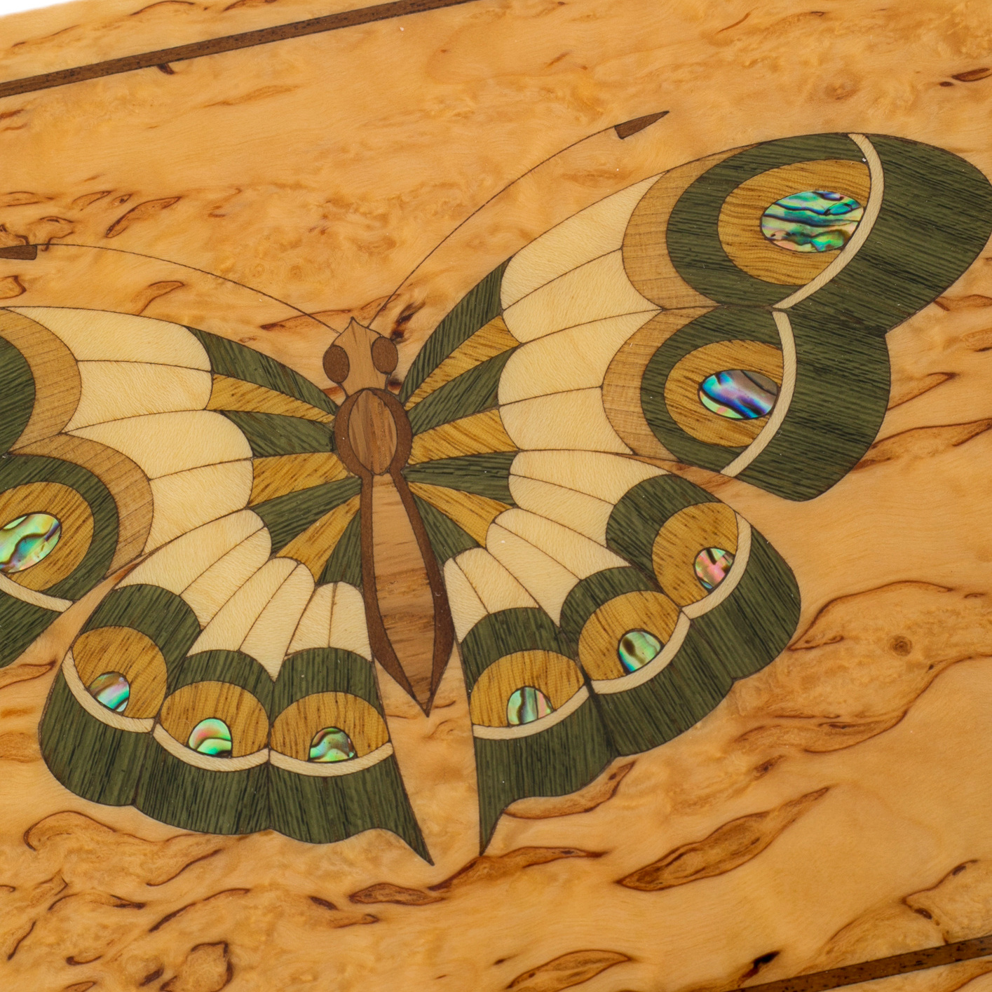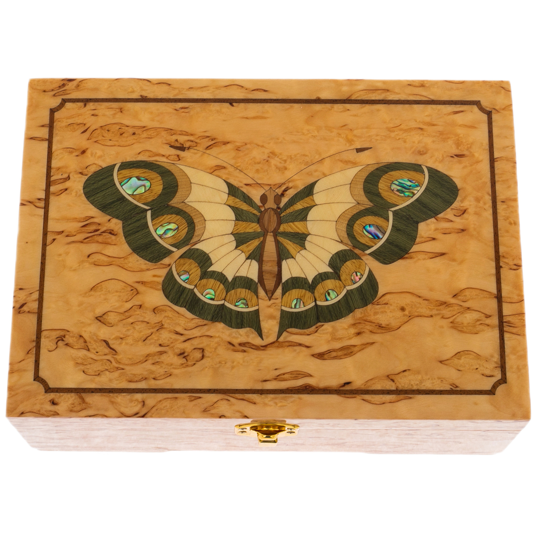 Шкатулка для украшений из карельской березы "Бабочка" зеленая
