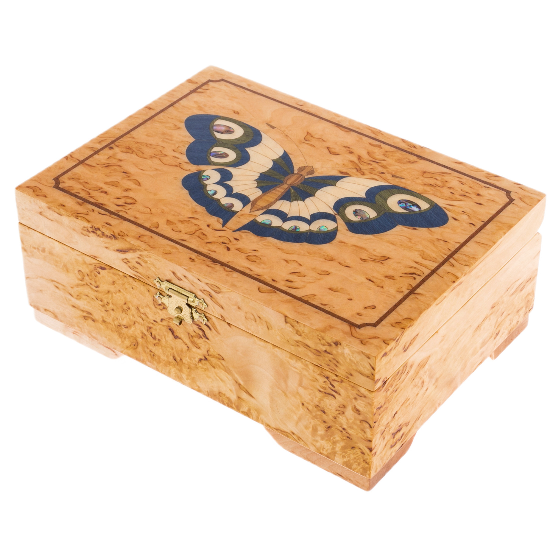 Шкатулка для украшений из карельской березы "Тёмная бабочка"