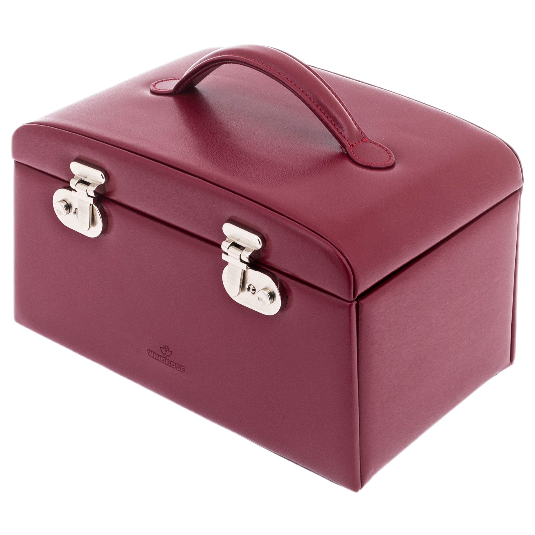 Шкатулка для украшений Windrose 3683 бордового цвета представляет собой воплощение продуманного комфорта и утончённого стиля. Компактная снаружи, но по-настоящему просторная внутри, она создаёт идеальные условия для хранения ювелирных украшений высокого класса. Корпус, отделанный гладкой бордовой эко-кожей, элегантно сочетается с внутренней отделкой из мягкого замшевого материала в бежевом оттенке, создавая визуально тёплую и благородную гармонию.