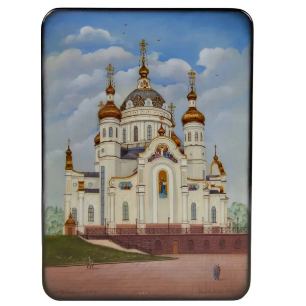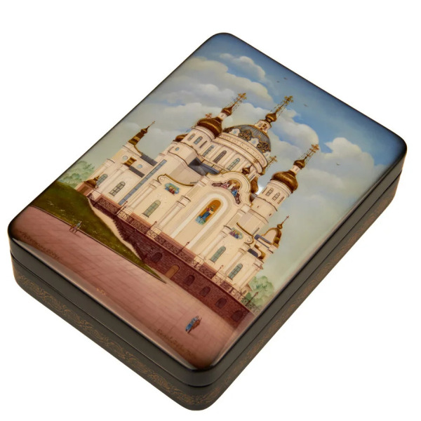 Шкатулка "Донецк. Храм Петра и Февронии" Беловодова, Федоскино