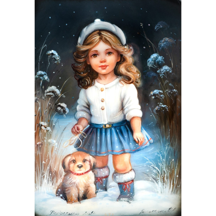 Отличительная черта Федоскинской миниатюры — реализм, достигнутый с помощью сложной многослойной масляной живописи. На эту живописную базу наносятся нежные отблески сусального золота, серебра, перламутра, создавая эффект свечения и глубины. Каждый штрих становится частью величественной композиции, оживающей в плавных переходах света и тени, подчеркивающих тончайшие детали.