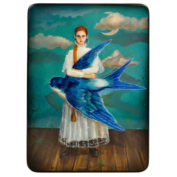 Отличительная черта Федоскинской миниатюры — реализм, достигнутый с помощью сложной многослойной масляной живописи. На эту живописную базу наносятся нежные отблески сусального золота, серебра, перламутра, создавая эффект свечения и глубины. Каждый штрих становится частью величественной композиции, оживающей в плавных переходах света и тени, подчеркивающих тончайшие детали.