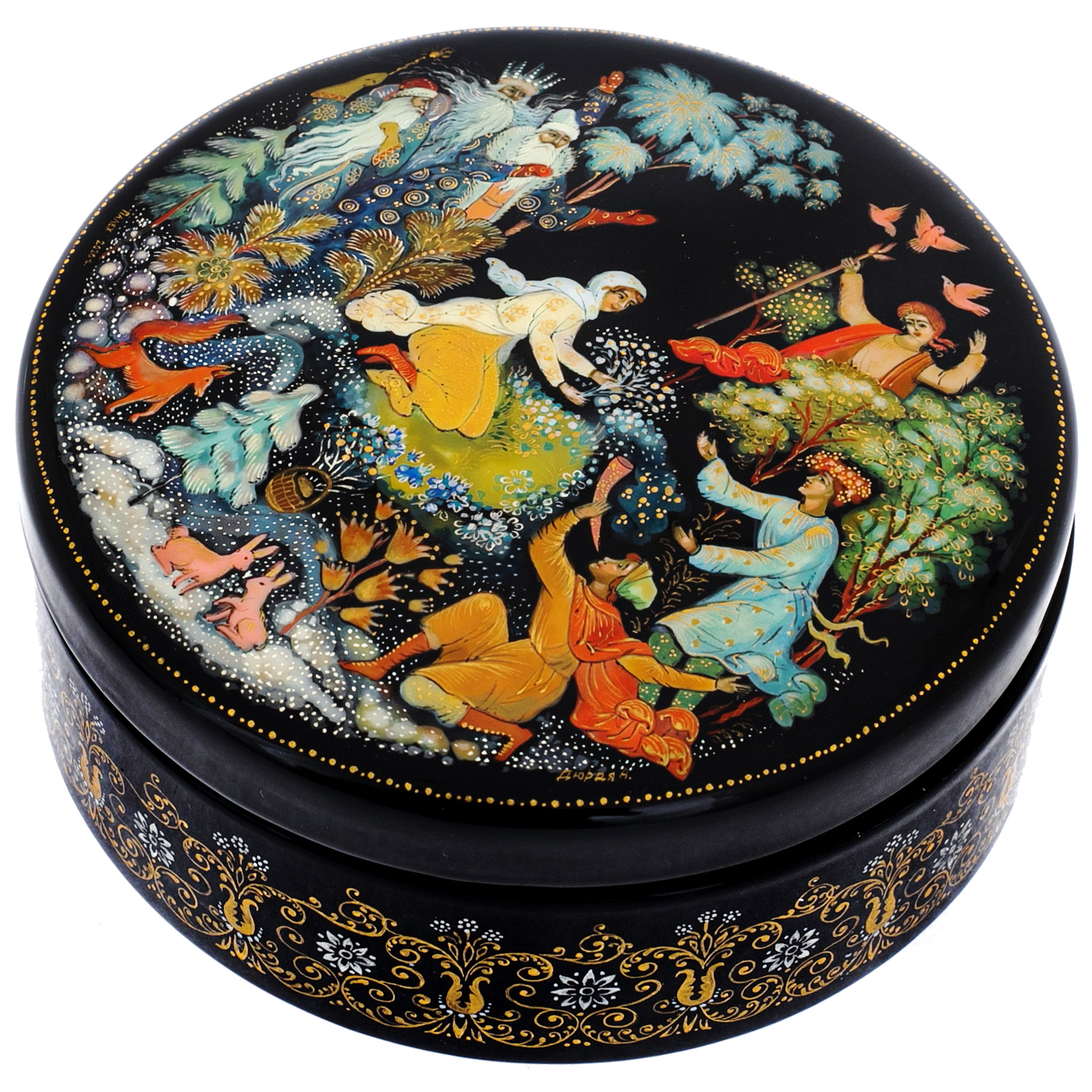 Шкатулка "Двенадцать месяцев" Палех