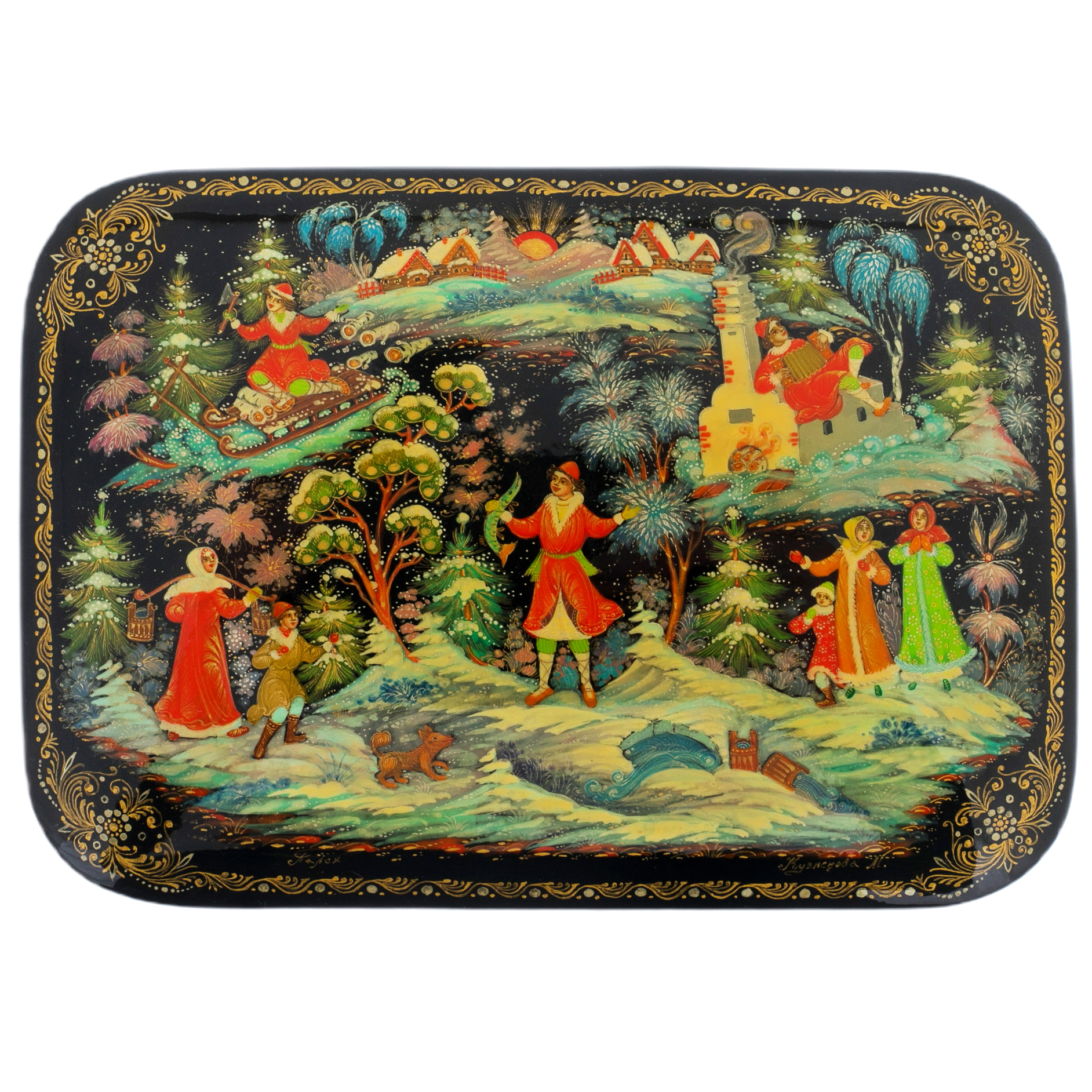 На первый взгляд шкатулка "Емеля" кажется маленькой, почти игрушечной, но в её деталях прячется целая Вселенная. Каждый элемент вручную расписан в традициях палехской лаковой миниатюры, оживляя древние русские сказания. Лаковая поверхность, будто черное зеркало, отражает сюжет, где природа и герои соединяются в танце света и тени. Эта шкатулка — настоящий символ русской сказки, воплощенный в художественном совершенстве.