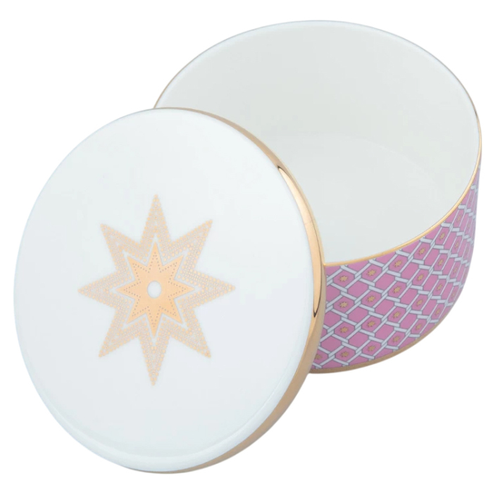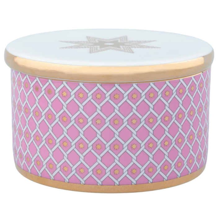 Шкатулка входит в коллекцию «Астра». Нежный, благородный оттенок розового цвета, выбранный для «Астры», напоминает удивительный бриллиант «Розовая звезда». Этот драгоценный камень считается одним из самых редких и дорогих в мире. Геометрический паттерн, созданный художником Юлией Чистяковой, является оммажем на великое наследие Императорского фарфорового завода, включая Собственный сервиз Елизаветы Петровны середины XVIII века и легендарную «Кобальтовую сетку» Анны Яцкевич. Звезды, изображенные на фарфоре, предопределили название коллекции, ведь с греческого «астра» переводится как «звезда».
