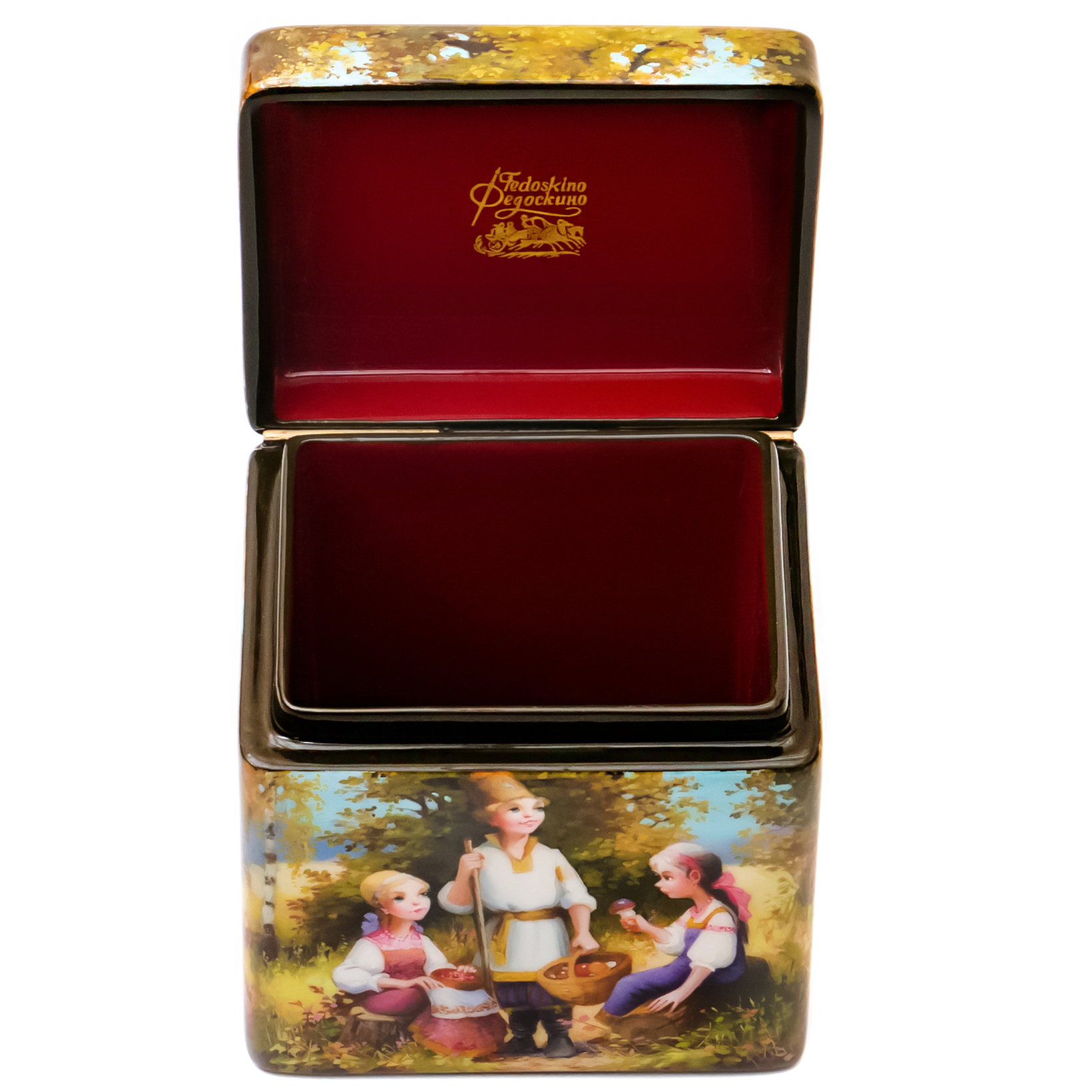 Сделанная вручную, шкатулка навсегда сохраняет любовь и созидающую энергию федоскинских мастеров и художников-миниатюристов.