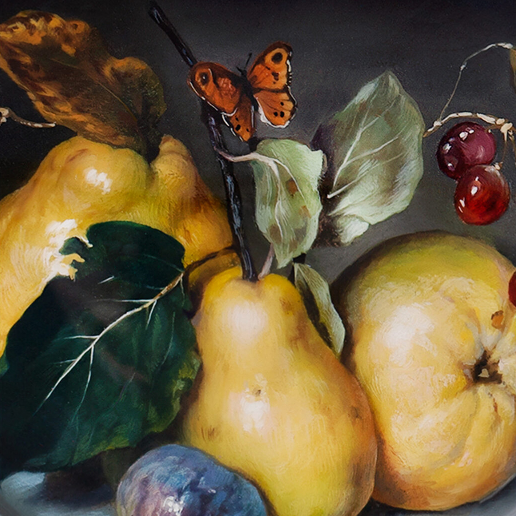 Отличительная черта Федоскинской миниатюры — реализм, достигнутый с помощью сложной многослойной масляной живописи. На эту живописную базу наносятся нежные отблески сусального золота, серебра, перламутра, создавая эффект свечения и глубины. Каждый штрих становится частью величественной композиции, оживающей в плавных переходах света и тени, подчеркивающих тончайшие детали.