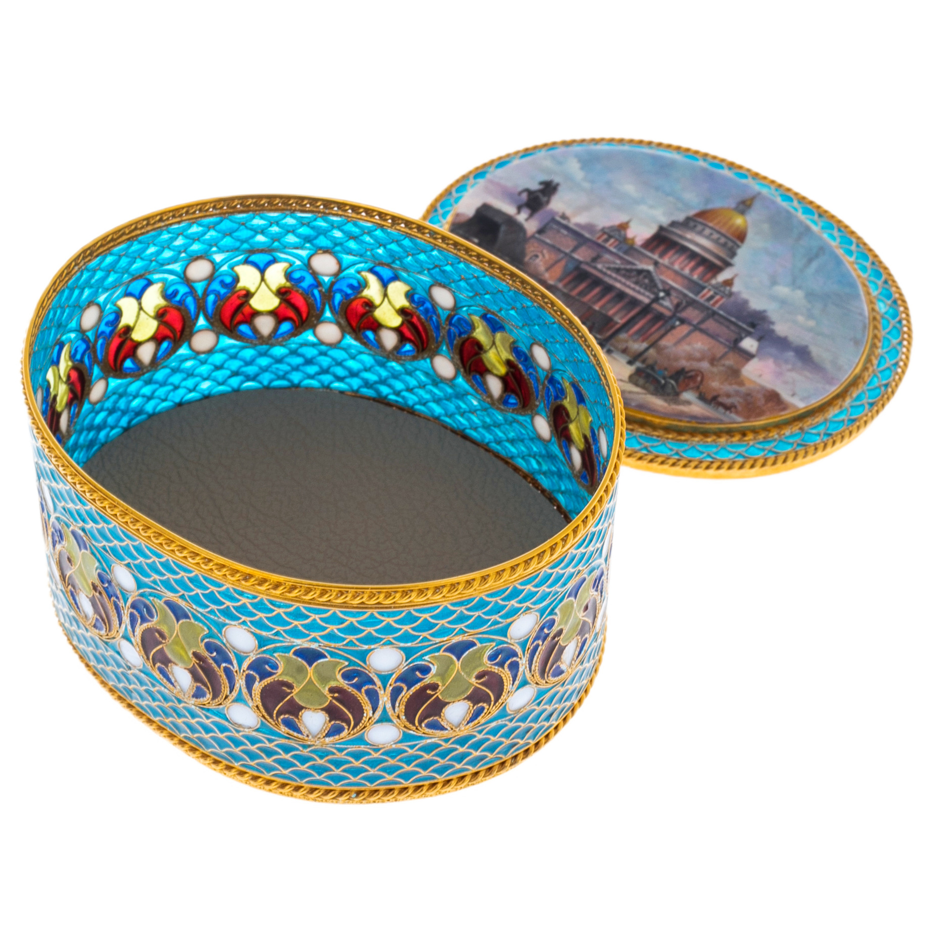 Шкатулка "Исаакиевский собор" с витражными эмалями и перламутром