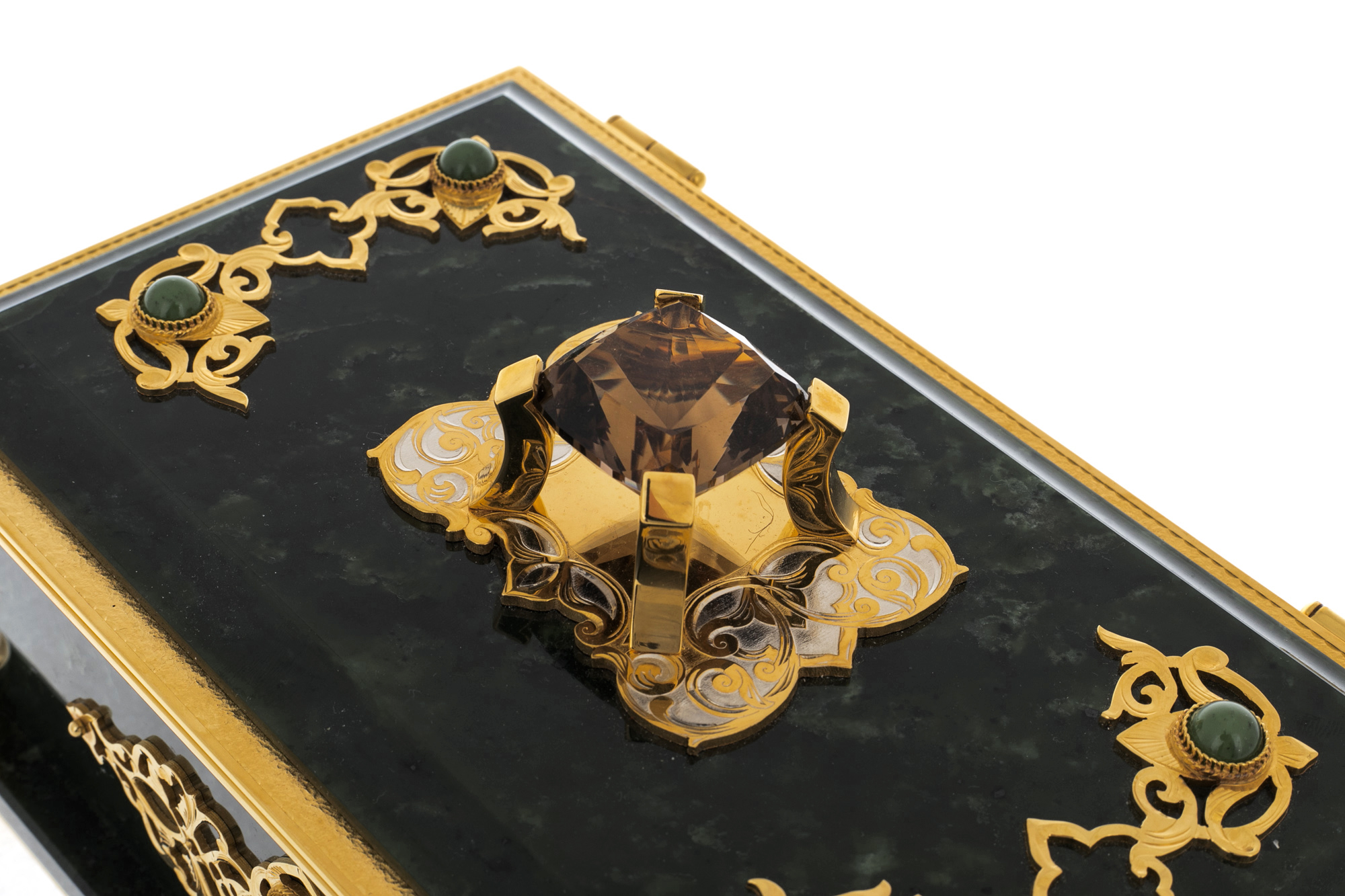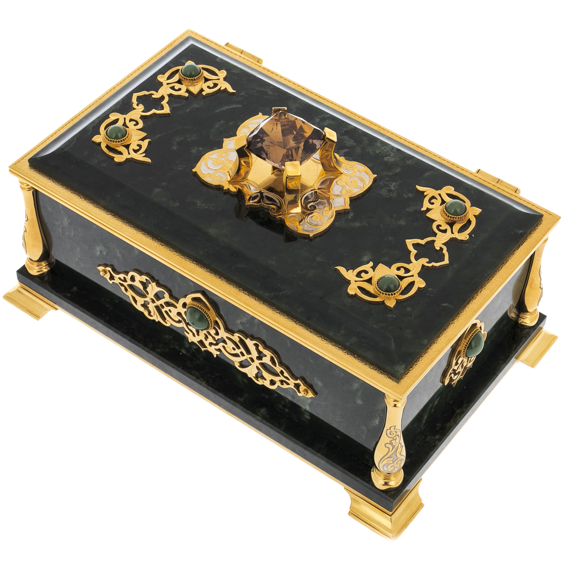 Материалы:нефрит, раухтопаз, латунь, никель, позолота.