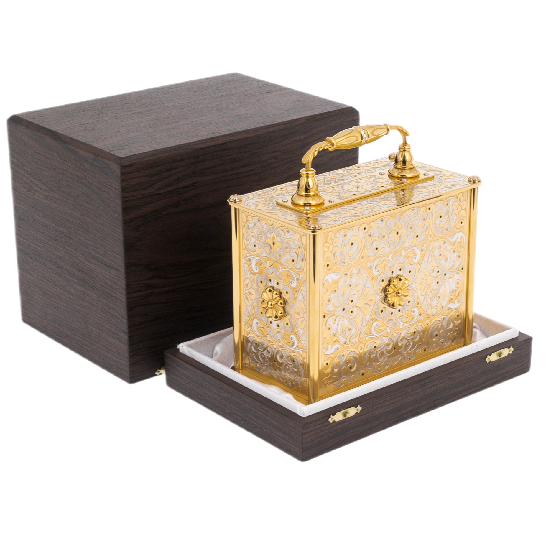 Этот сундук — больше, чем просто шкатулка. Он является воплощением идей вечного обладания, сокровищницы для реликвий, несущих в себе память поколений. В нем заключена история триумфа, он говорит о превосходстве вкуса и понимании настоящей роскоши. Открывая его, вы не просто прикасаетесь к шедевру, но становитесь частью мира, где ценится безупречность и абсолютная красота.