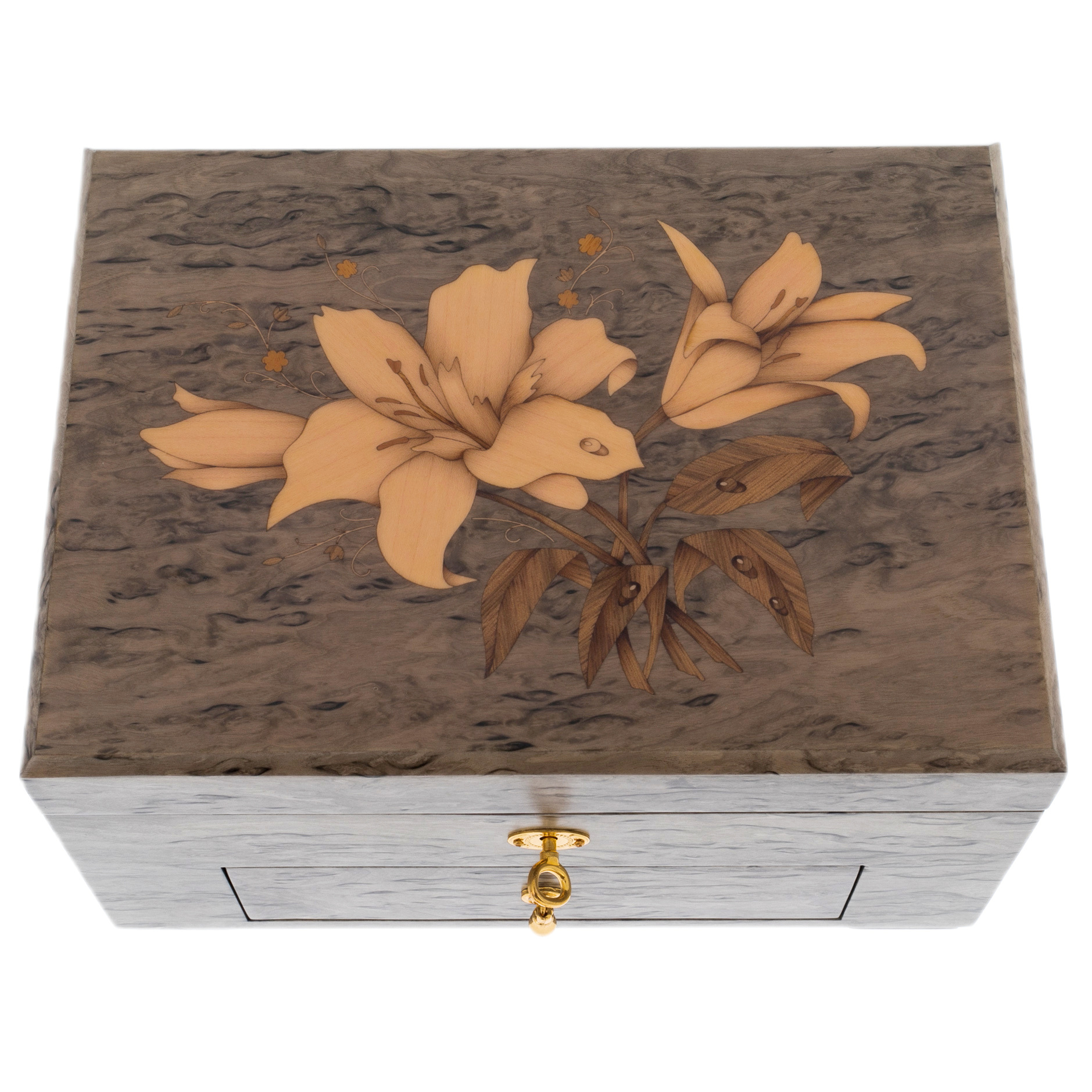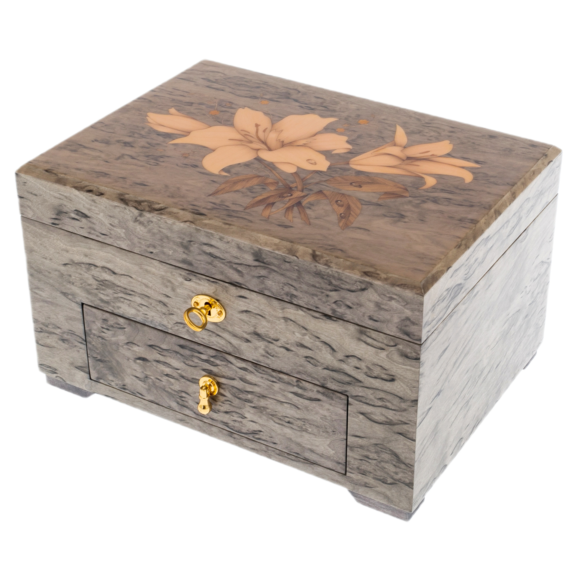 Шкатулка-ларец "Цветы" из тонированной карельской березы