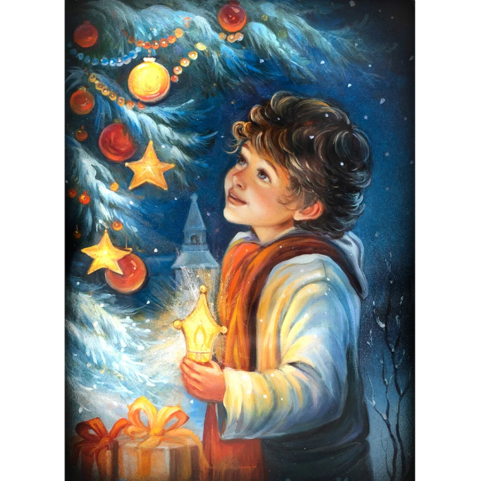 Отличительная черта Федоскинской миниатюры — реализм, достигнутый с помощью сложной многослойной масляной живописи. На эту живописную базу наносятся нежные отблески сусального золота, серебра, перламутра, создавая эффект свечения и глубины. Каждый штрих становится частью величественной композиции, оживающей в плавных переходах света и тени, подчеркивающих тончайшие детали.
