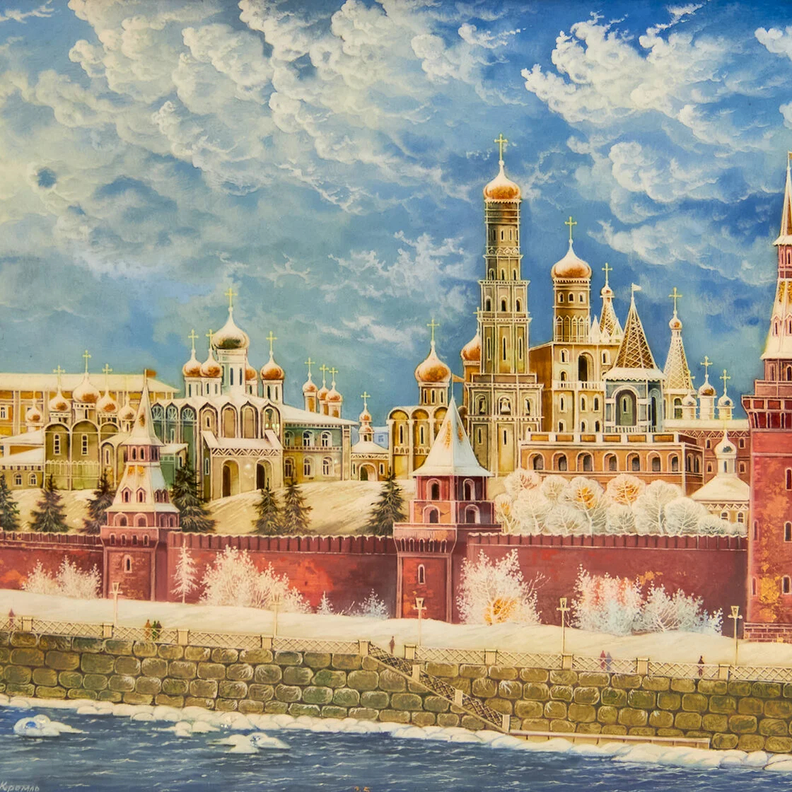 Отличительная черта Федоскинской миниатюры — реализм, достигнутый с помощью сложной многослойной масляной живописи. На эту живописную базу наносятся нежные отблески сусального золота, серебра, перламутра, создавая эффект свечения и глубины. Каждый штрих становится частью величественной композиции, оживающей в плавных переходах света и тени, подчеркивающих тончайшие детали.