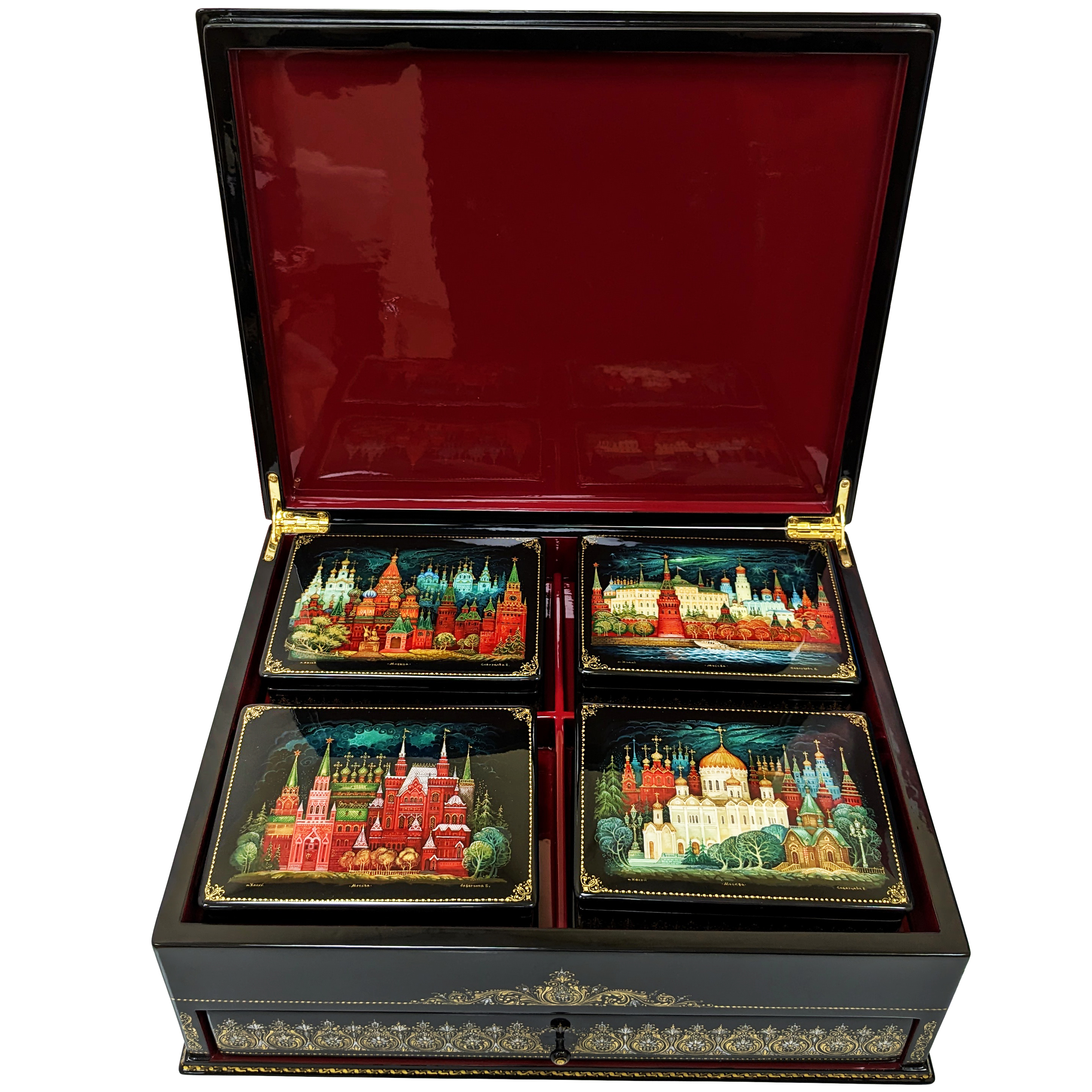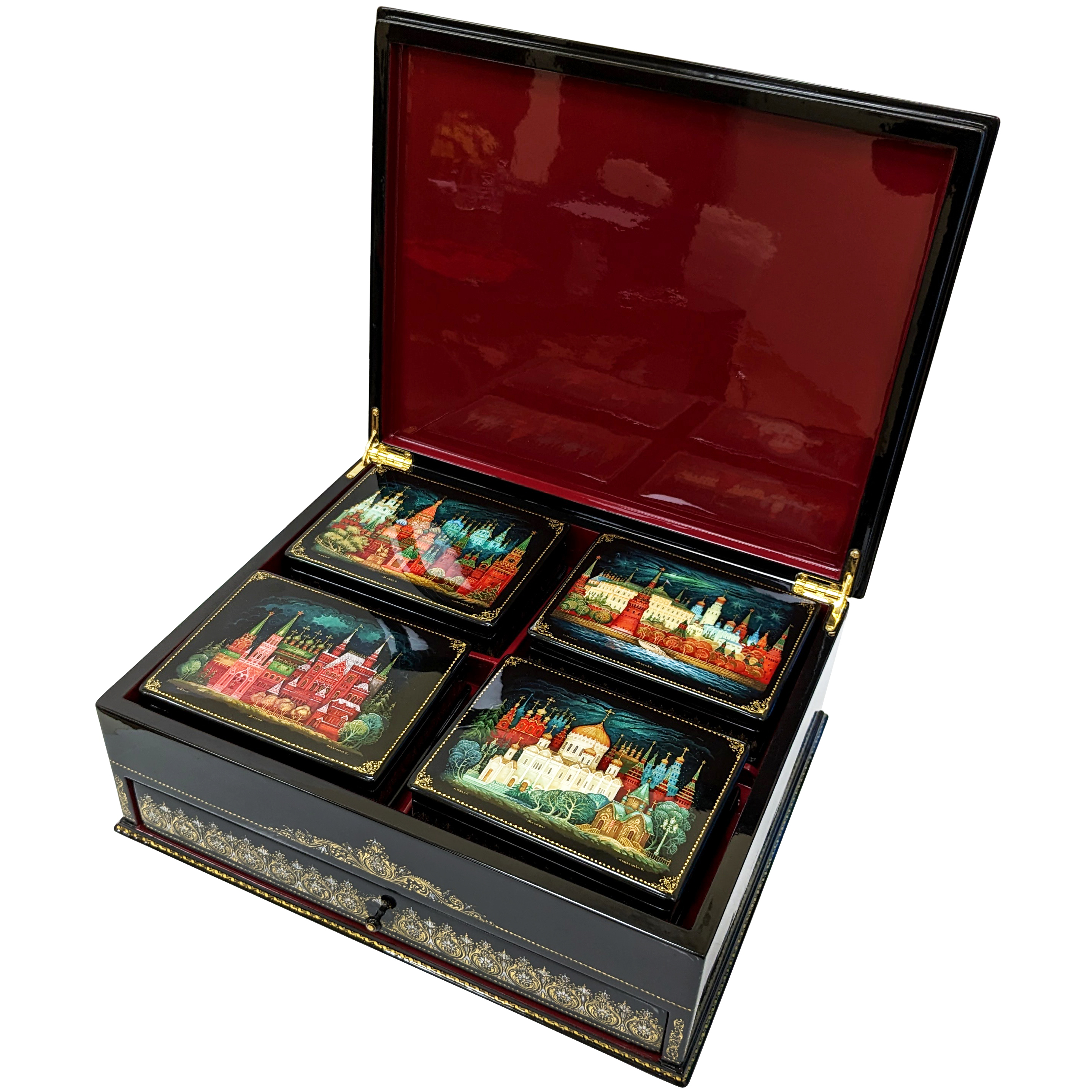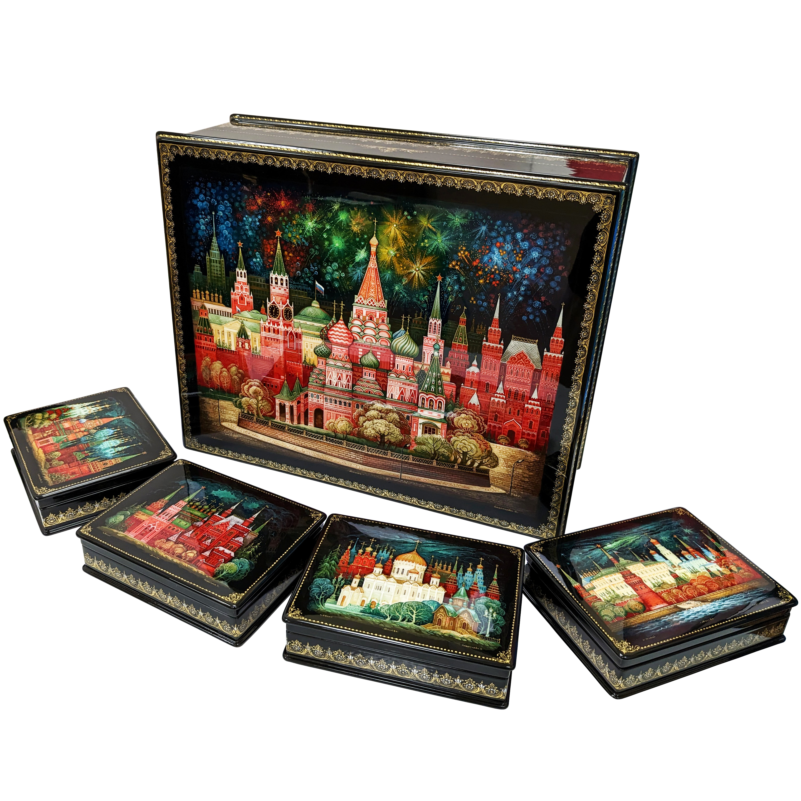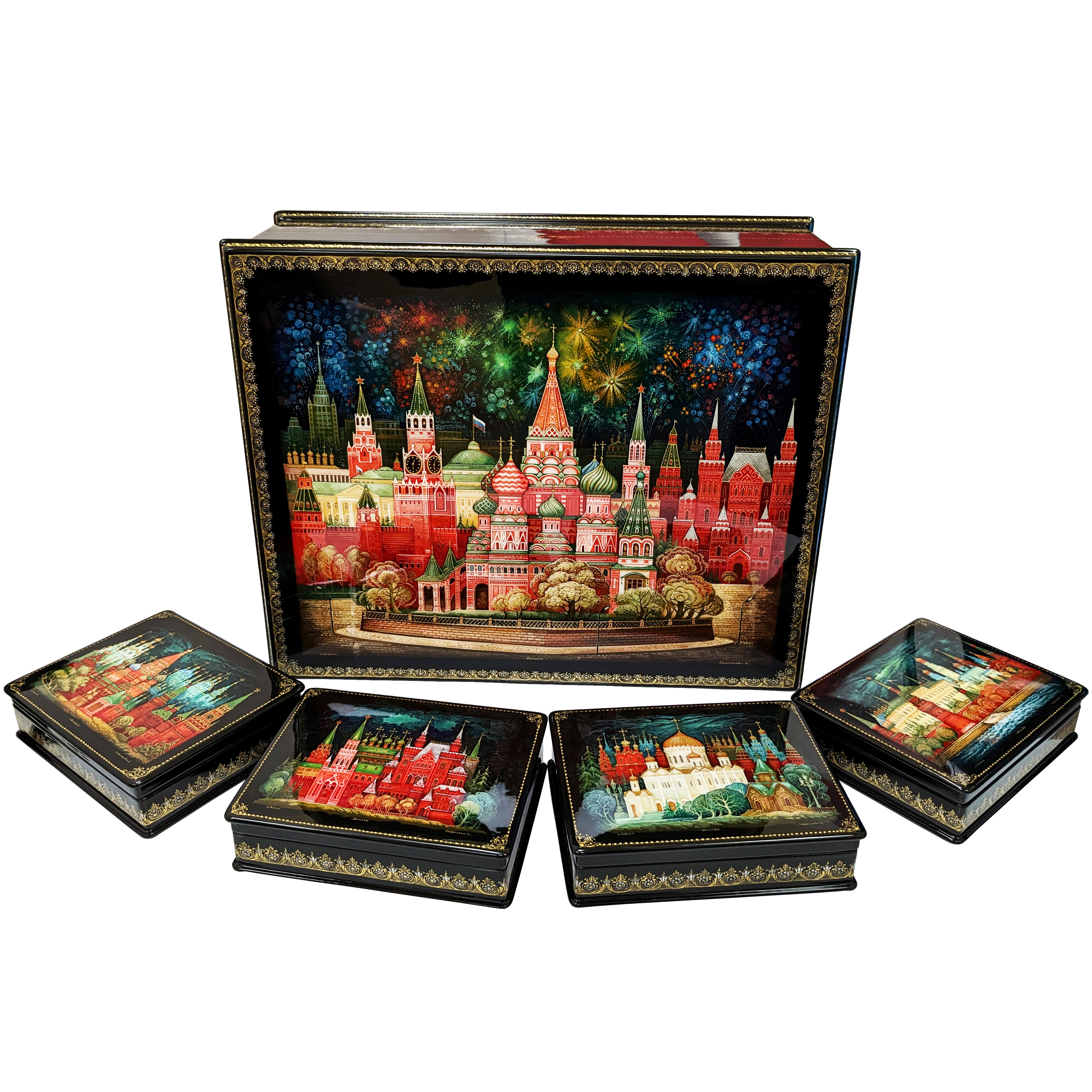 Шкатулка "Москва" с 4-мя шкатулками, Палех