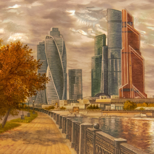 Шкатулка "Москва Сити" Карпова, Федоскино