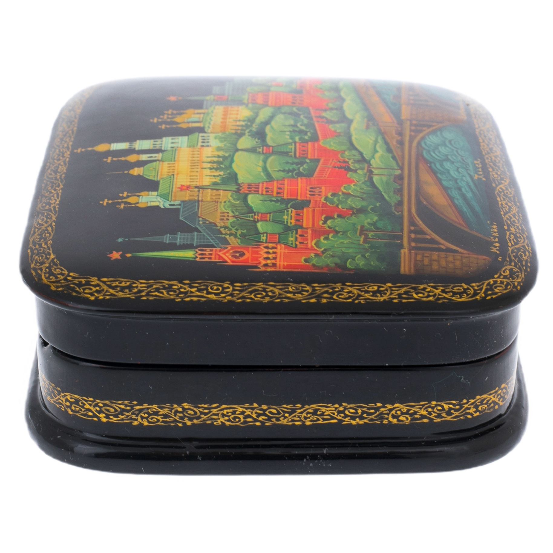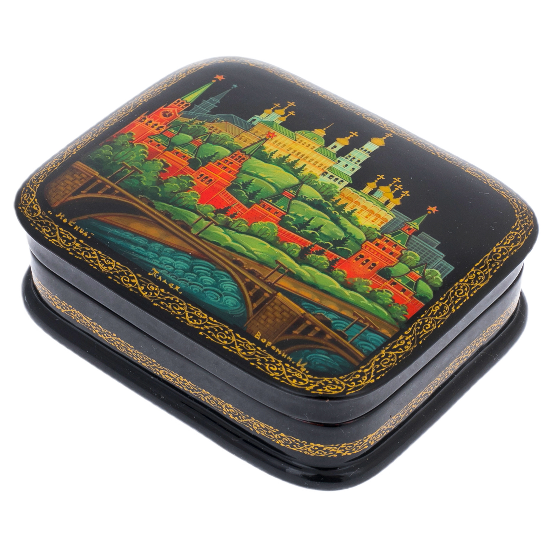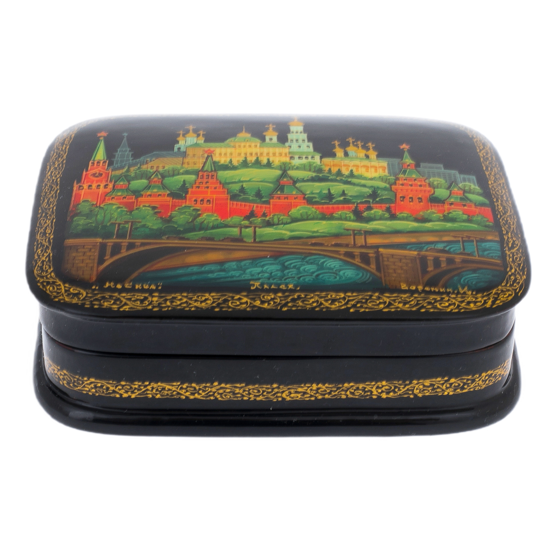 Шкатулка "Москва" — настоящая находка для ценителей искусства и утончённого стиля. Изготовленная из прессованного высококачественного древесного картона (папье-маше), пропитанного горячим льняным маслом, она является символом статуса и изысканности. Нанесённый грунт, состоящий из льняного масла, сажи и глины, создаёт прочную и долговечную основу, на которую нанесён великолепный черный масляный лак, придающий изделию загадочность и глубину.