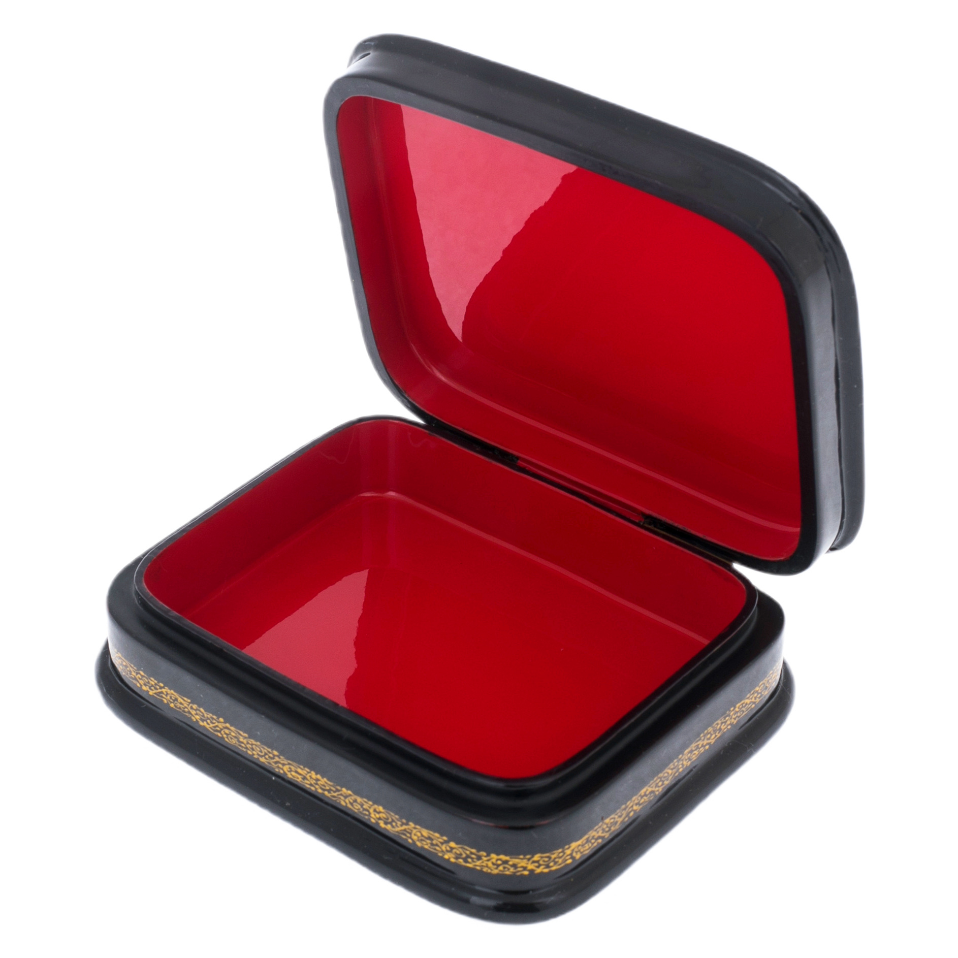Внутреннее пространство шкатулки, покрытое яркой красной краской и лаком, символизирует тепло и уют, создавая атмосферу защищённости для ваших драгоценностей. Этот насыщенный цвет, как сердце, пульсирующее жизненной энергией, наполняет шкатулку особым смыслом, превращая её в хранительницу воспоминаний и значимых моментов — каждое открытие становится ритуалом, позволяющим вновь пережить эмоции и впечатления, которые она бережно хранит.