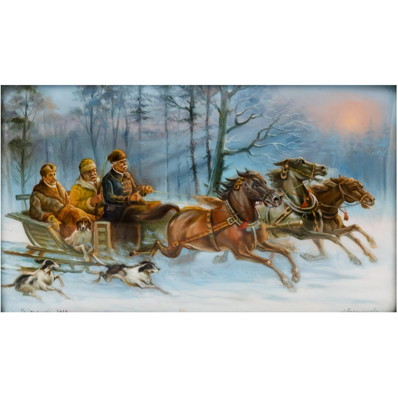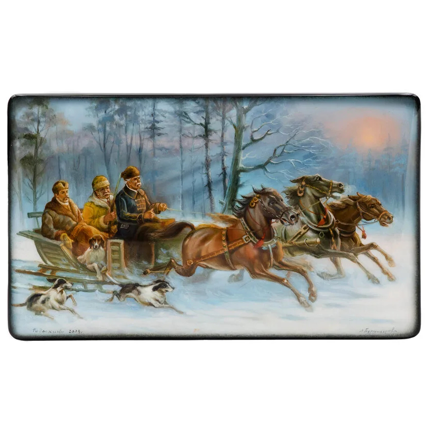 Шкатулка "На охоту" Бурмистрова, Федоскино