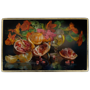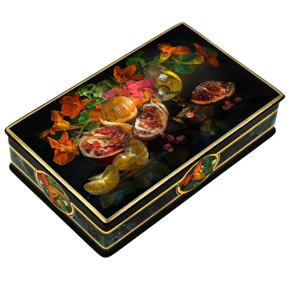 Шкатулка "Натюрморт с гранатами и мандаринами" Шелухин, Федоскино